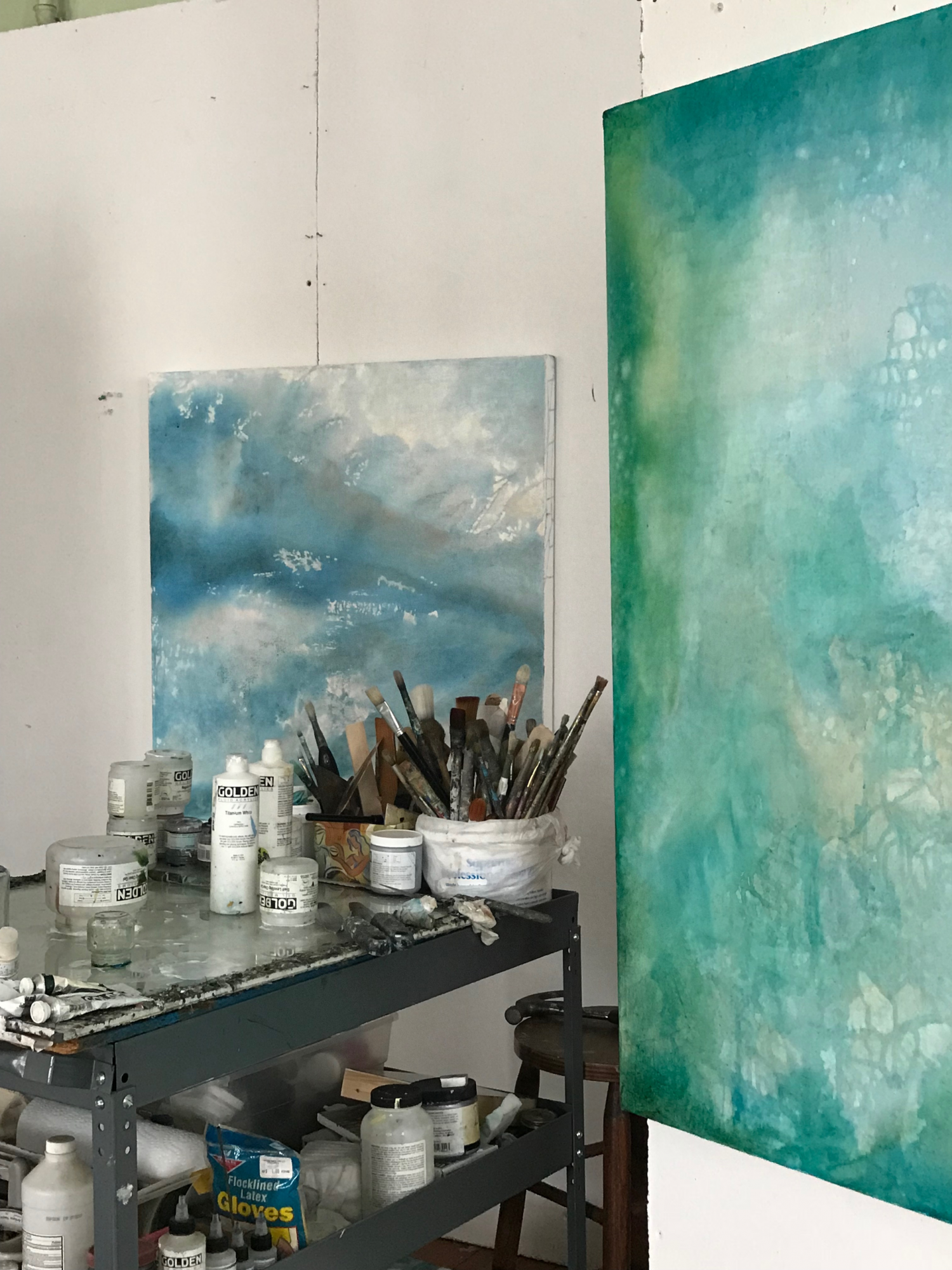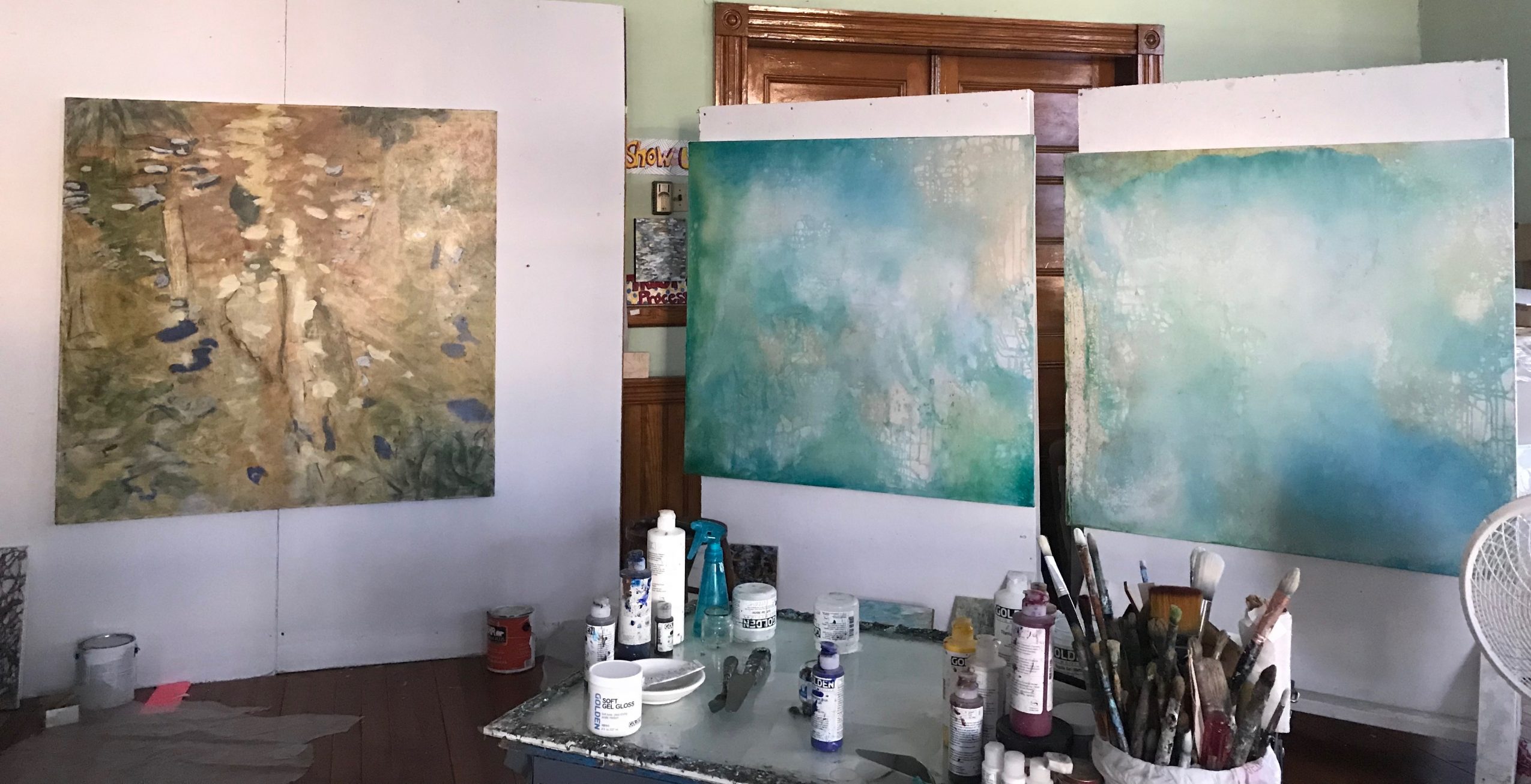 Once out of undergrad, I realized how isolating the world outside of school could be. So, I set out immediately to find a studio space outside my home. In addition to having a dedicated work space, I wanted to connect with other artists. My first studio was at Saxonville Studios, housed in the old Roxbury Carpet Mill, in Framingham. This space was full of connections for me. My grandfather worked in the space when it was Roxbury Carpet. It was here I learned from other seasoned artists, how run a successful open studio event. After a few years sharing a studio there, I set out to find a space I could afford on my own. This search led me to the Bancroft Building, located on the south side of Framingham. Big windows, lots of empty space and affordable rent made it a perfect setting for artists.