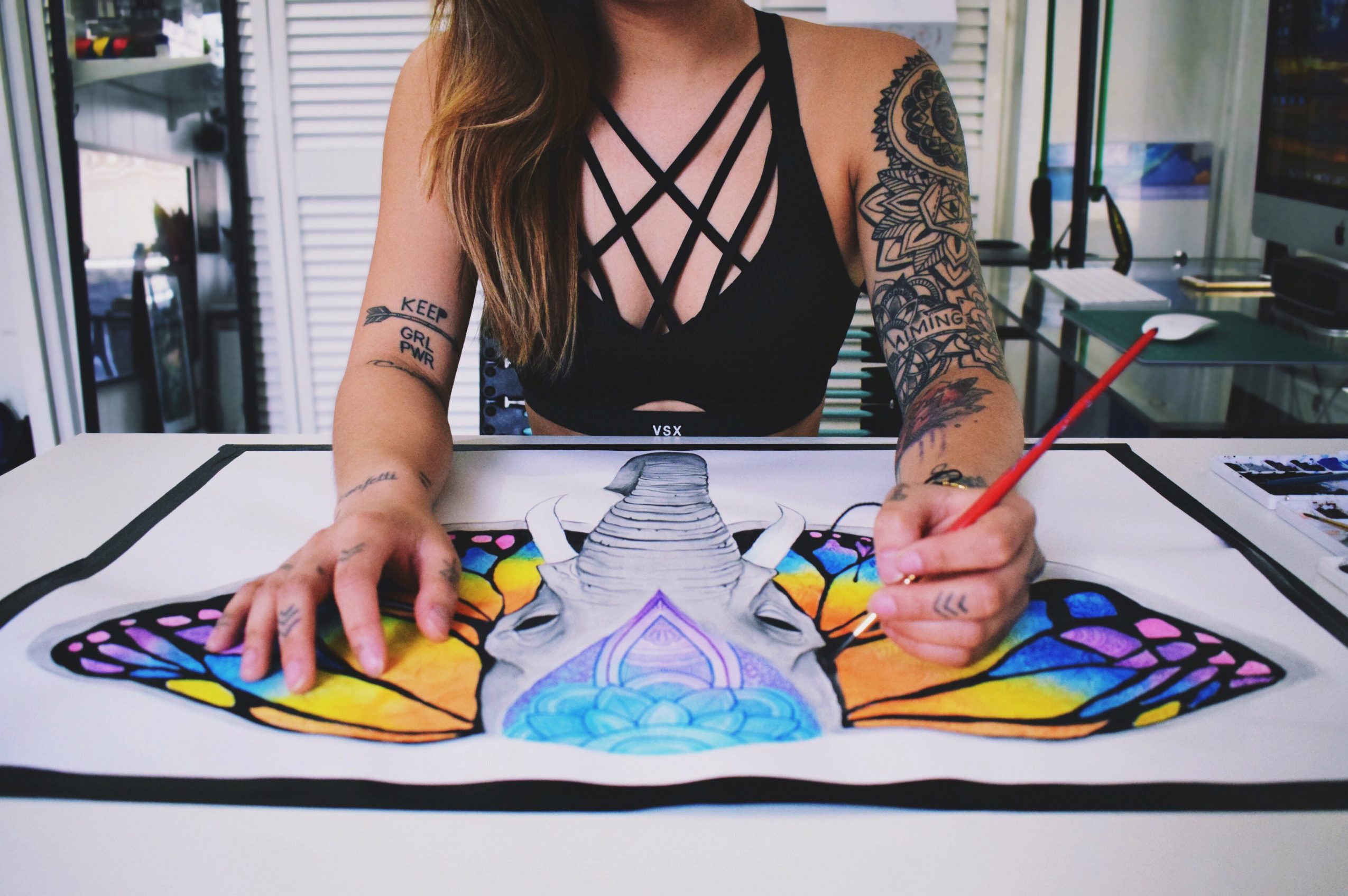 It all started with the book store called Boarders. My dad used to take my brother and I every day to that book store while he walked around the loop to get his exercise. That’s how I learned how to draw. I was always fascinated by children books because of the bright bold colors, the simple line work, the contrast between light and dark and the choice of colors. That inspired me to pick up a pencil and started drawing. I learned from “How To Draw…” books which helped me a lot as well. I’ve been drawing ever since. As I grew older, I didn’t know what I wanted to do with my art but I knew I wanted to do something within the arts field. After I graduated high school, I did not end up going to college but instead, I told myself I am going to practice every day, experiment and try different mediums. I kept drawing and creating daily and practicing because the more you practice, the better you will be. Practice makes progress. After 2 years of consistent drawing and creating, I got a good amount of customers thanks to my friends and family and started doing commission pieces. Then, I started drawing things that interest me like spirituality, animals, space/universe, feminism, the LGBT community. People connected with my work when I started posting my work up online. A friend of mine told me to make prints so people can buy them. After that day, I started making prints for people to buy and here I am today running my own business and being my own boss.