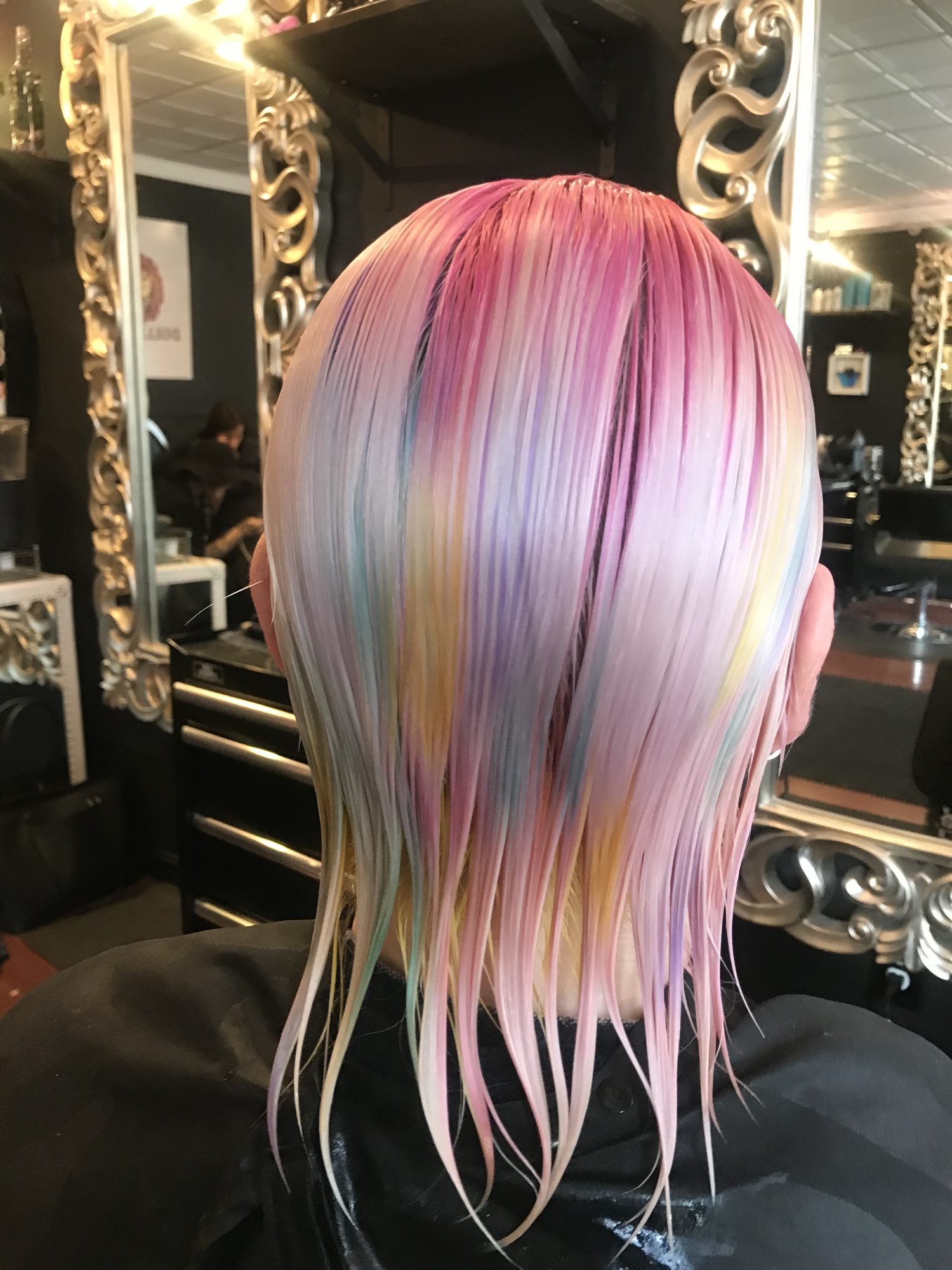 I specialize in extensions, fantasy color, and the famous trending Balayage. I would say I’m best known for my blends. What I’m most proud of today is being able to say I’m a part of a team of girls that feed off each other’s creativity and support! And that’s what really sets us apart at least that’s what clients say 🙂