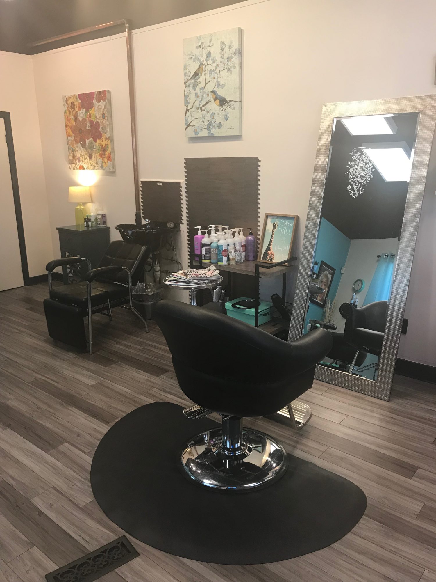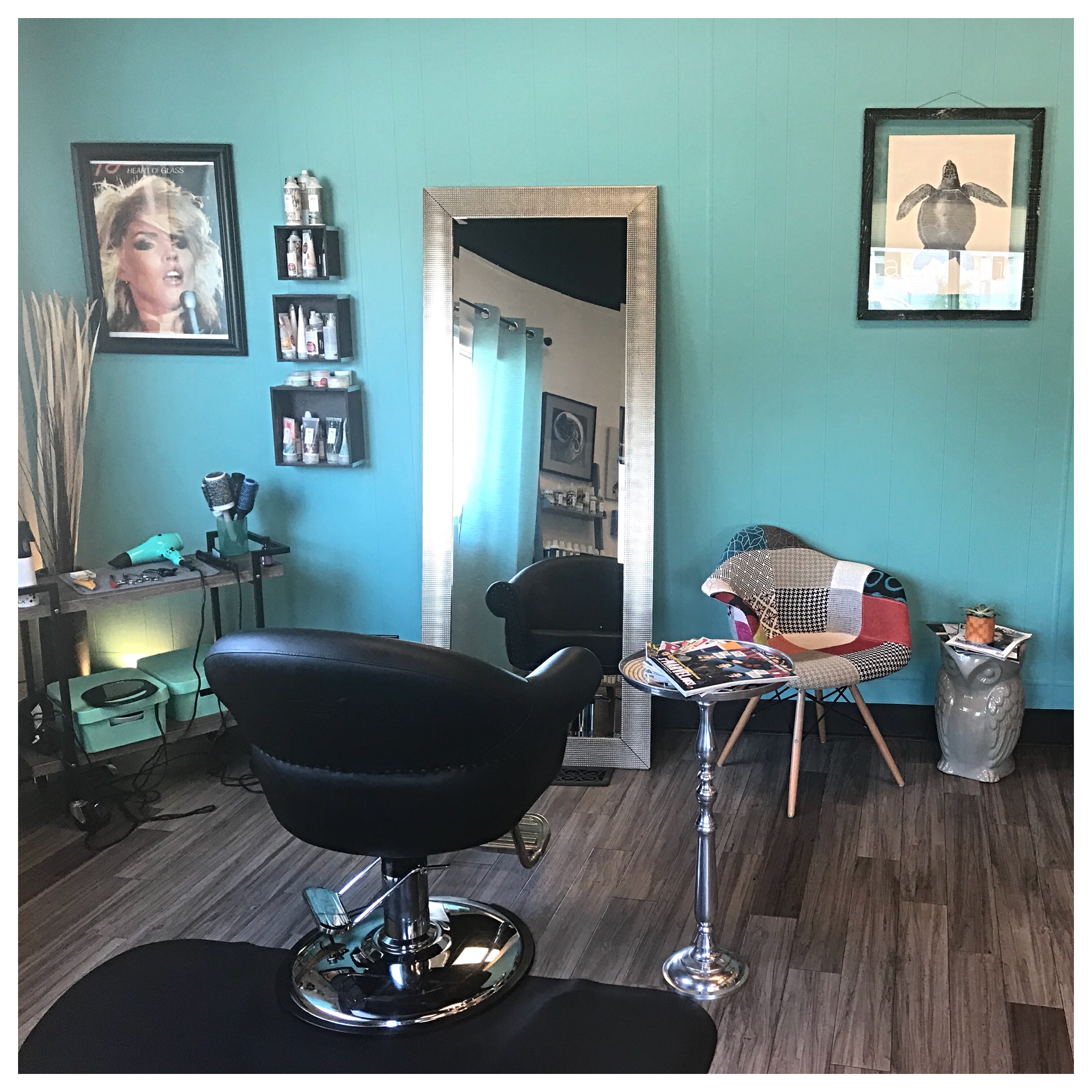 I own a boutique hair salon that’s intimate and super cute. I believe in pampering my guests with complimentary beverages, hand massages, scalp massages, hot towels infused with essential oils…creating an experience for them that they can’t get everywhere. I’m a big believer in continuing education and using products that are cruelty-free and amazing quality: R+Co, Ver, and Oligo. I recycle as much as I can and believe in living a greener life in the world of hair. My color is ammonia free and ppd free: Calura. I service both men and women in cutting and color. Music is a huge inspiration that is a constant at the salon as well as artwork from around the country. We have a very special thing going on at Alainn and find it to be a hidden gem.