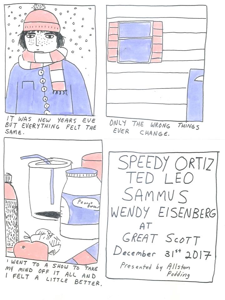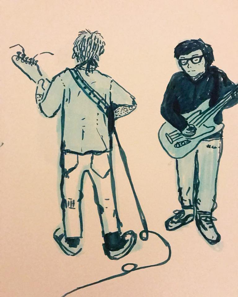 I started making zines and focusing on music illustration when I was in High School. I stayed home a lot because of some debilitating anxiety and subsequent health challenges. I spent my time listening to music and making zines about my favorite songs and doing email interviews with bands I wanted to share my love of. I went to art school in Boston and have stayed put since. I started playing DIY shows and making art for bands (shirts/album artwork/flyers and tour posters). Right now I’m a freelance Illustrator and writer, I play in a band called puppy problems and I work in an afterschool program/substitute teach and teach art at the Atrium School in Watertown and at the Mosesian Art Center. I also make zines and comics on my own and in collaboration with others.