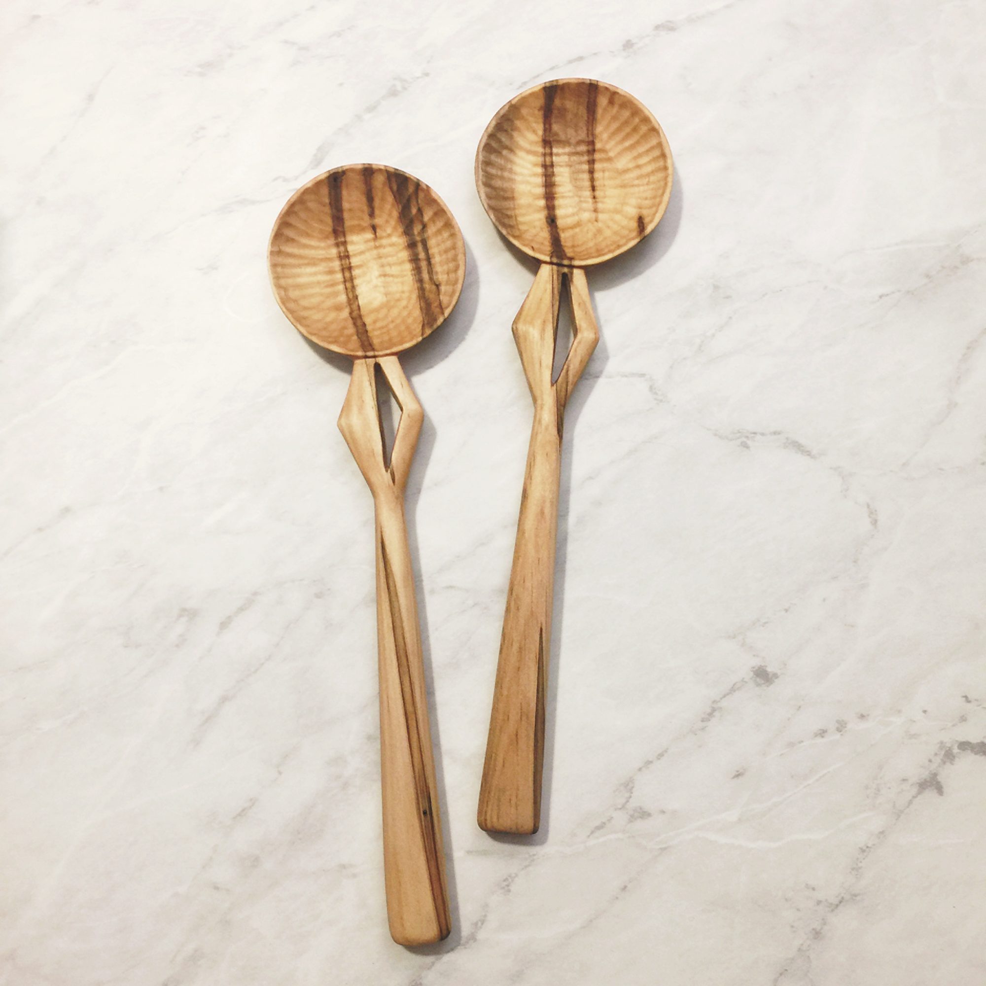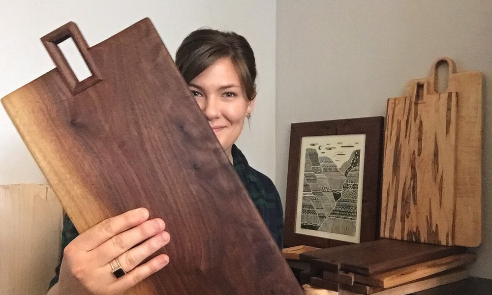In 2008, I was deep into my major (English) and needed a place to store my books, but I didn’t want to buy flimsy, overpriced furniture. Instead, my dad and I headed to Home Depot and built a bookshelf in his garage. It was a really empowering moment, especially because I was living in Utah and woodworking felt like a small but significant transgression. After that, I was offering to build everyone a bookshelf, and things snowballed from there. When I moved to Boston for my full-time teaching job, I had to adjust to a cozier living space (read: tiny!), so I scaled back to smaller pieces: cutting boards, utensils, utensils and decorative wall-hangings. I really love what I do.