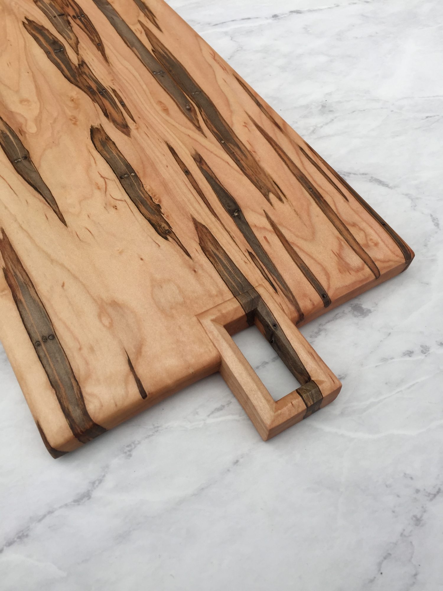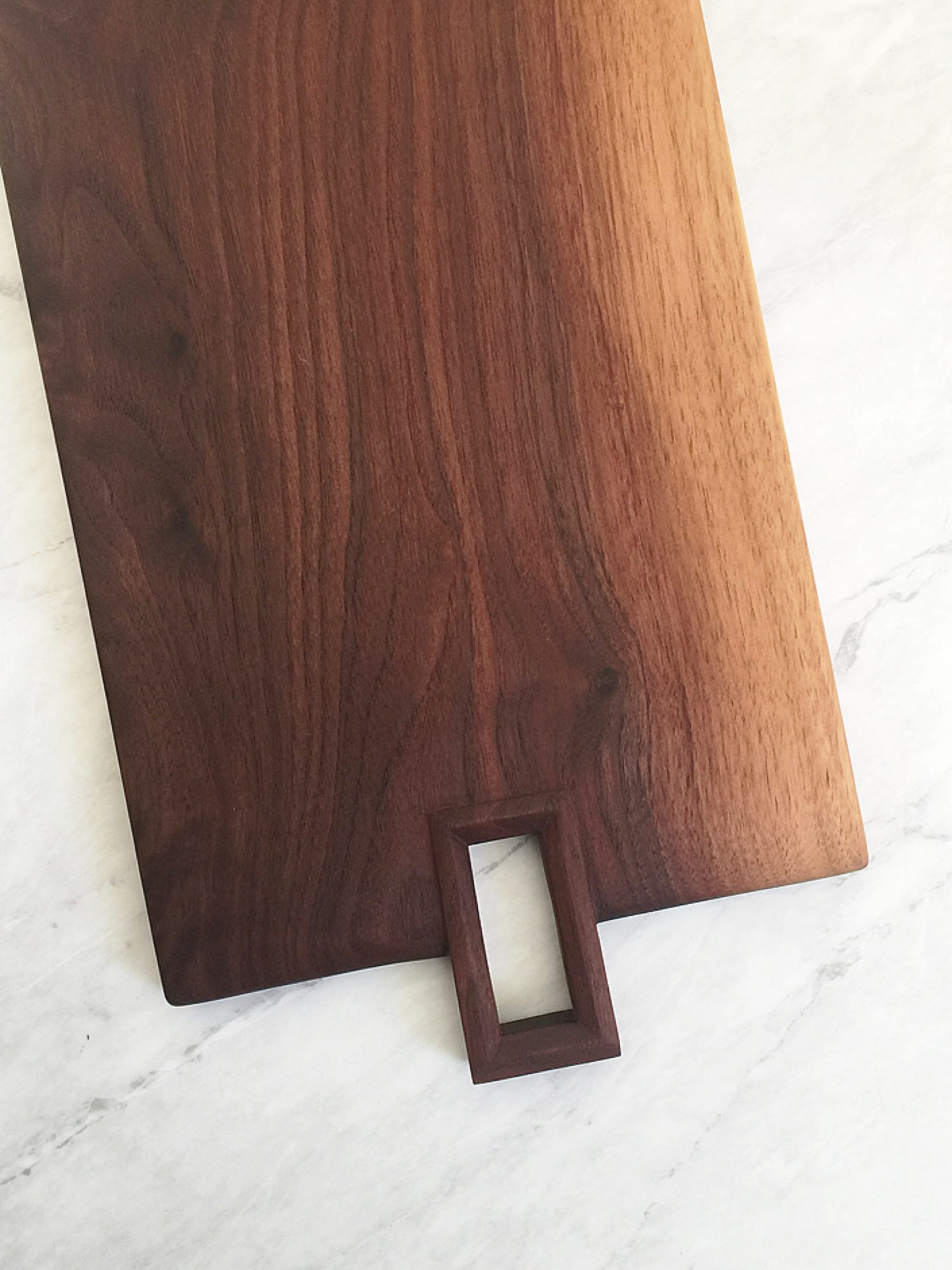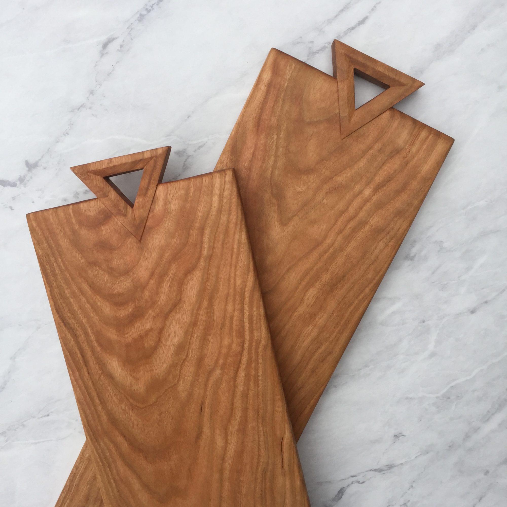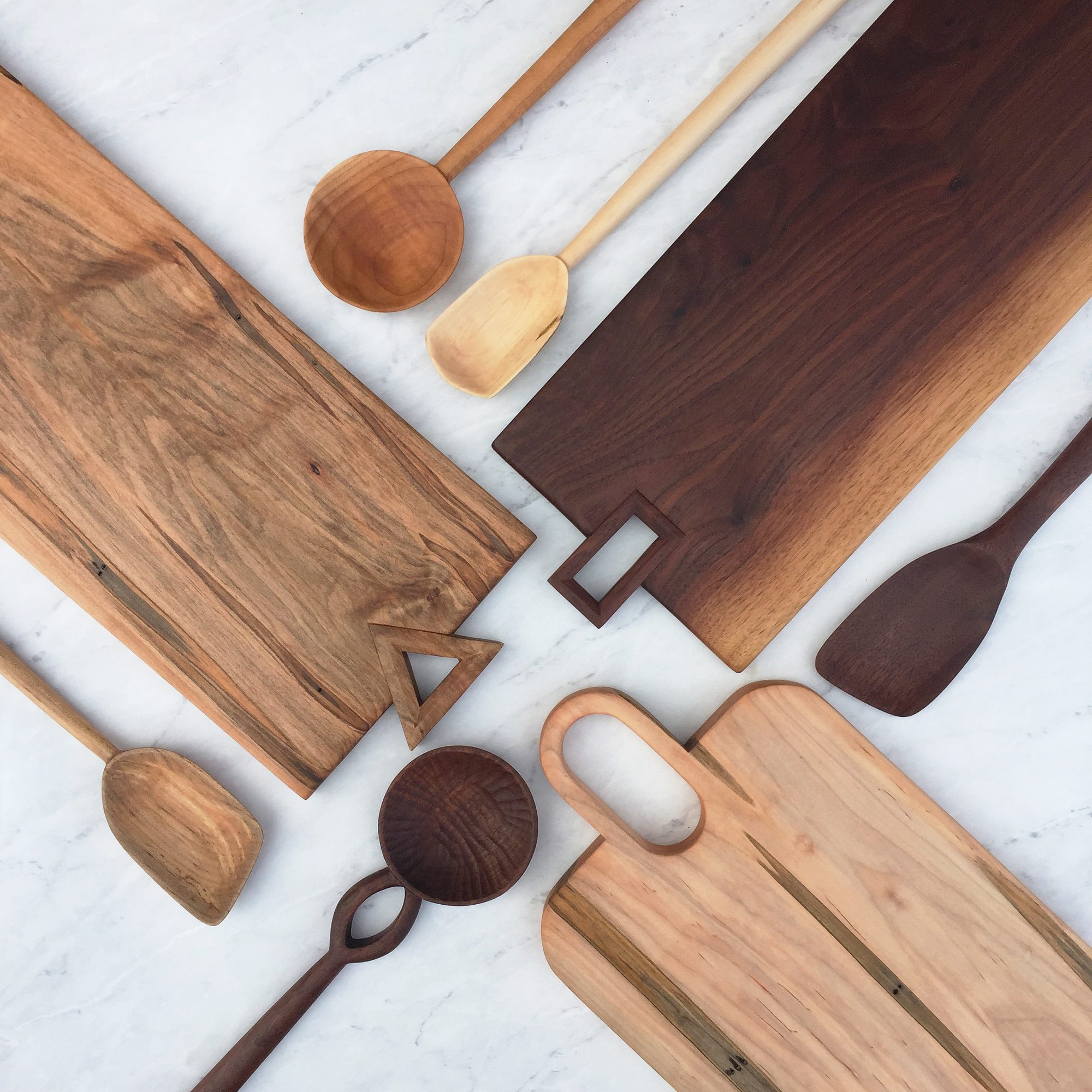 I specialize in handcrafted wooden wares: cutting boards, serving boards, charcuterie boards, and a variety of serving and cooking utensils. I’m likely known for my geometric aesthetic and play with negative space and clean lines. My work ranges from minimalist to a bit more architectural, but the function is always at the heart of my pieces.