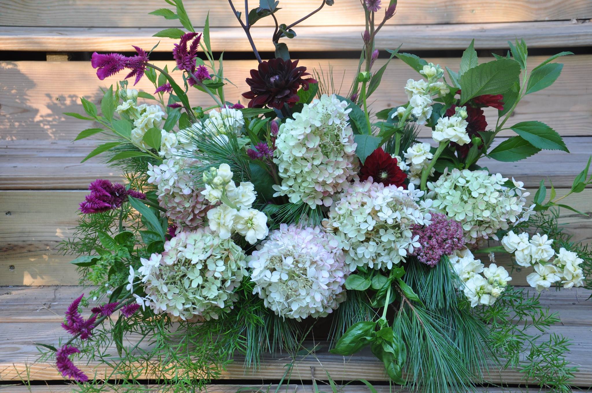 I first began designing in a floral shop on Martha’s Vineyard. During my husband’s career in the Coast Guard, we frequently moved. I worked in numerous floral design businesses during this time where I developed my skills and created my own style. We later moved and bought Moonset Farm, in Porter, Maine. Shortly after, I began working at Stone Mountain Arts Center where I designed floral center pieces for various shows and events. I first started designing for these events in our kitchen and later moved to our 200 year old barn. Stone Mountain launched wedding packages in which I was included as the in-house floral designer. While designing at Stone Mountain, my passion for floral design was rekindled. Friends and family requested my expertise and Moonset Farm Floral slowly, organically expanded. When the property across the street went on sale, I purchased it and created my studio. Moonset Farm Floral has blossomed into a thriving wedding floral business.