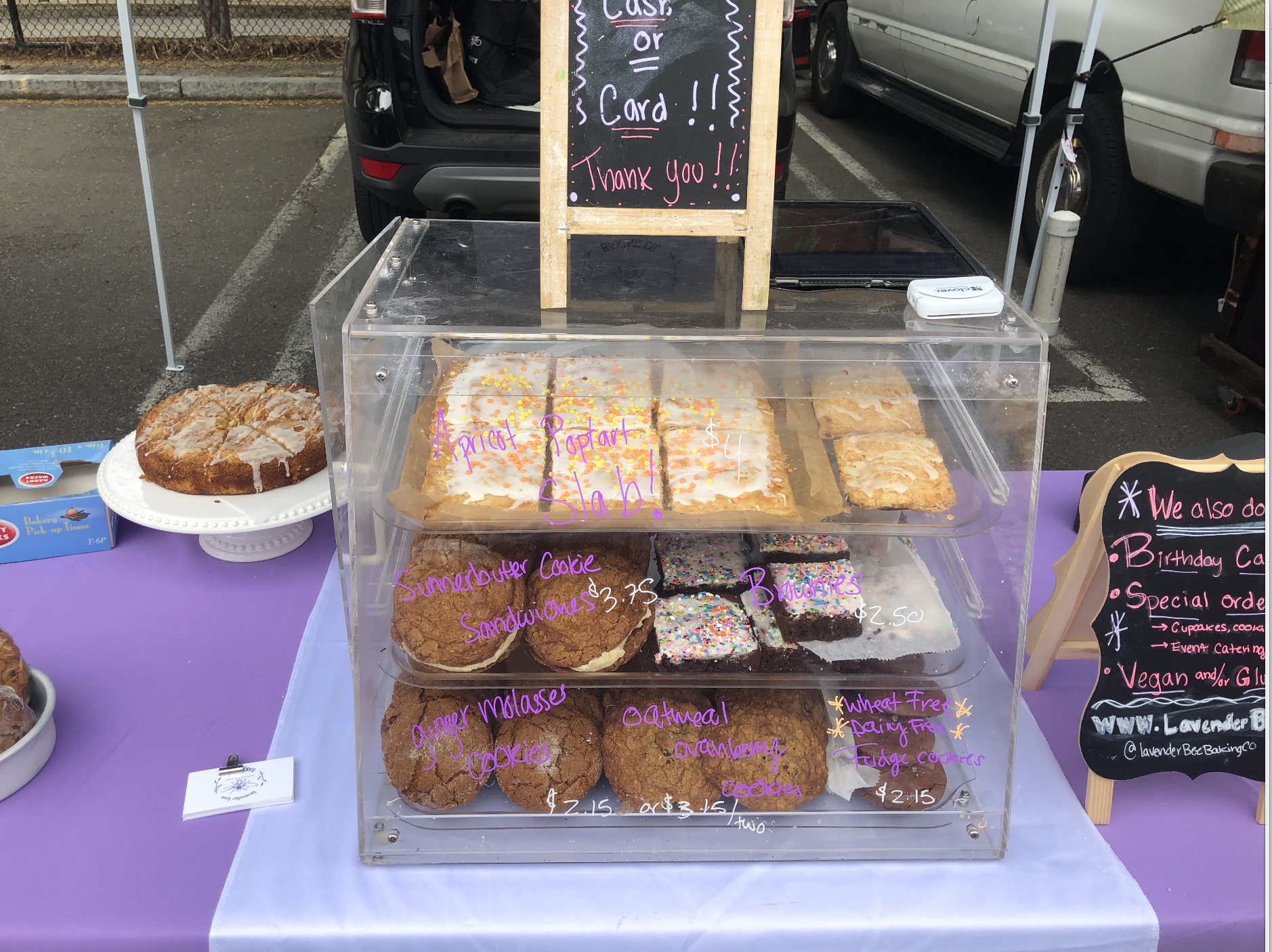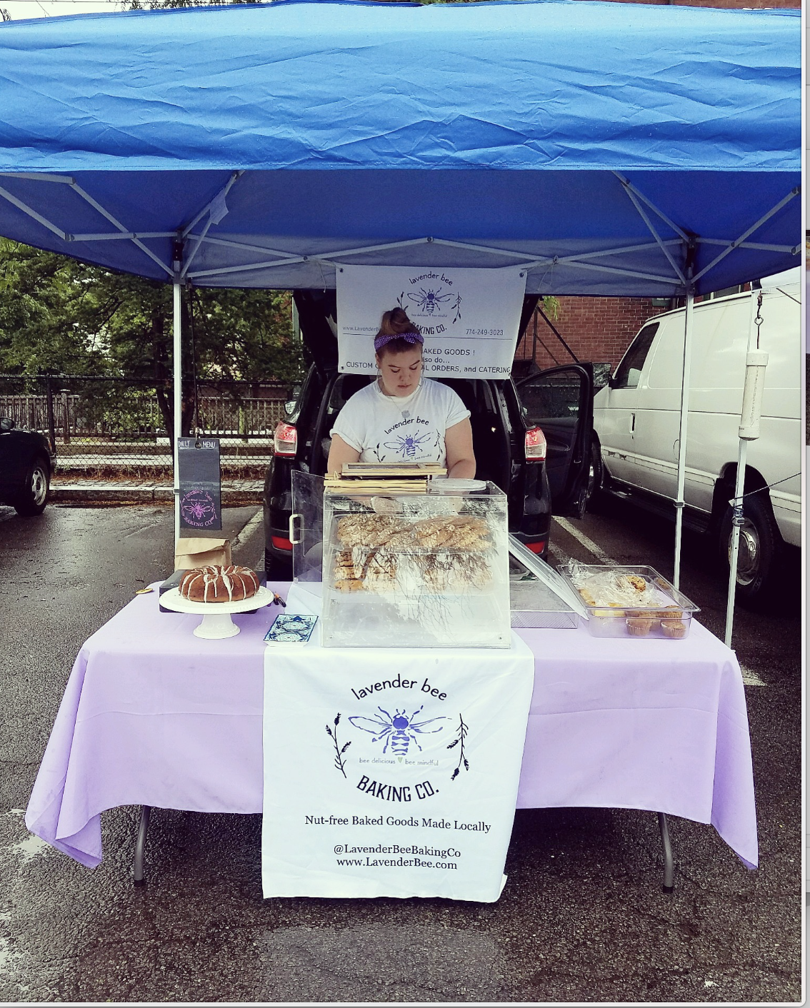 Lavender Bee Baking Company is a specialty nut-free baked good business based in Boston. I strive to provide delicious and safe treats for those with nut allergies, but also for those who just want a sweet treat! I specialize in nut free treats but I also understand the struggle other allergies have so I offer a variety of allergy-friendly items as well for those looking for gluten-free, vegan and more. Our ingredients are sourced as local as possible and baked fresh from scratch daily. I am most proud when I see that look of relief in the parents’ eyes and the excitement from the kids as they inhale a chocolate chip cookie or pop tart right in front of me. I love being at markets and having people coming up (sometimes sprinting up) to my tent knowing for the first time in a while they have the freedom to choose anything in my case and know they are safe with their allergies. Building these connections within my community is so important to me and being able to give back is one of my main goals in growing my business.