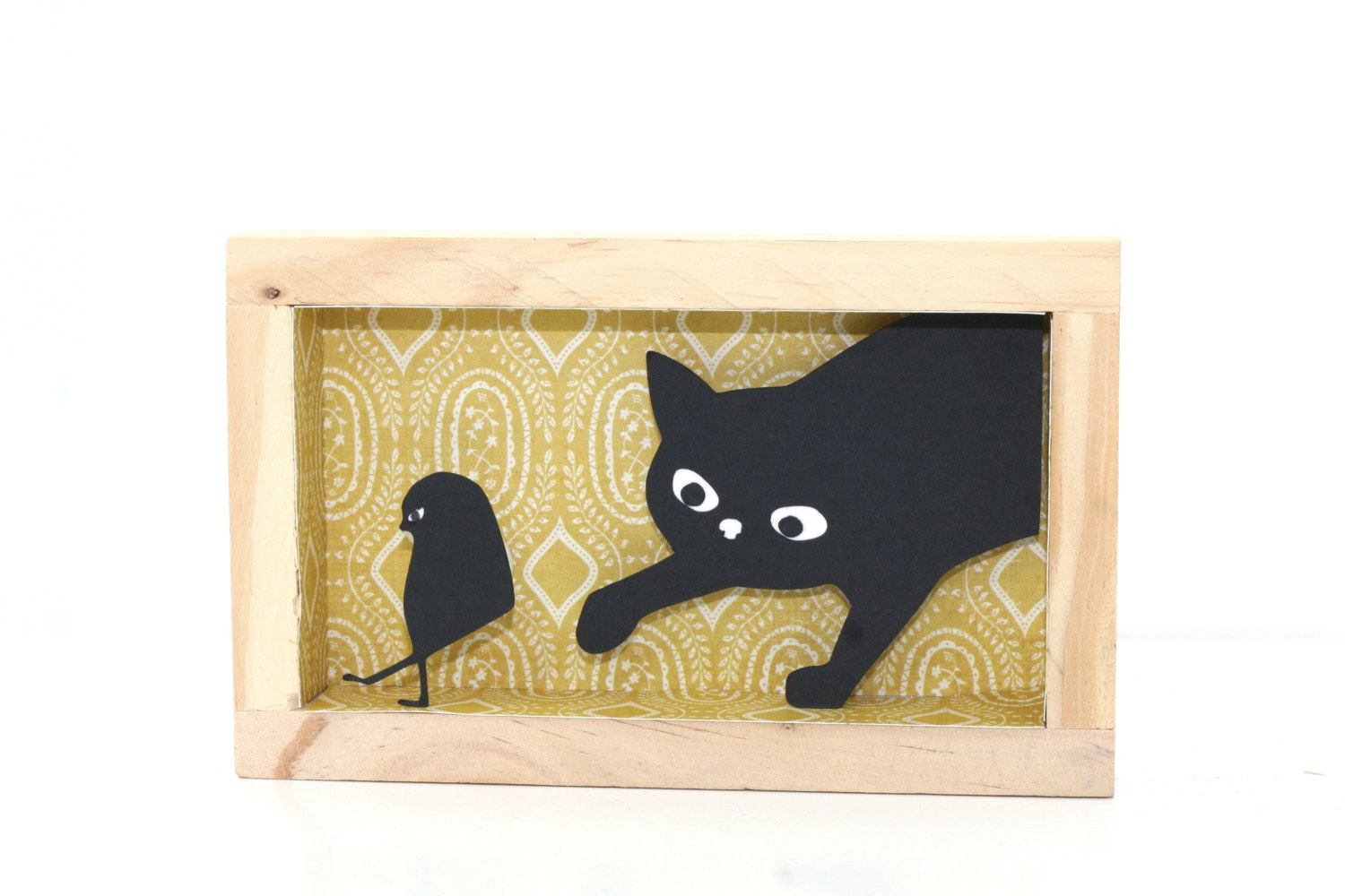 I draw comics – mostly one panel or four-panel comics. In 2015, I started making crafts to sell. I make – or put an image on – stickers, magnets, postcards, little books, greeting cards, tea towels, pins, tote bags, shadow boxes, and prints.