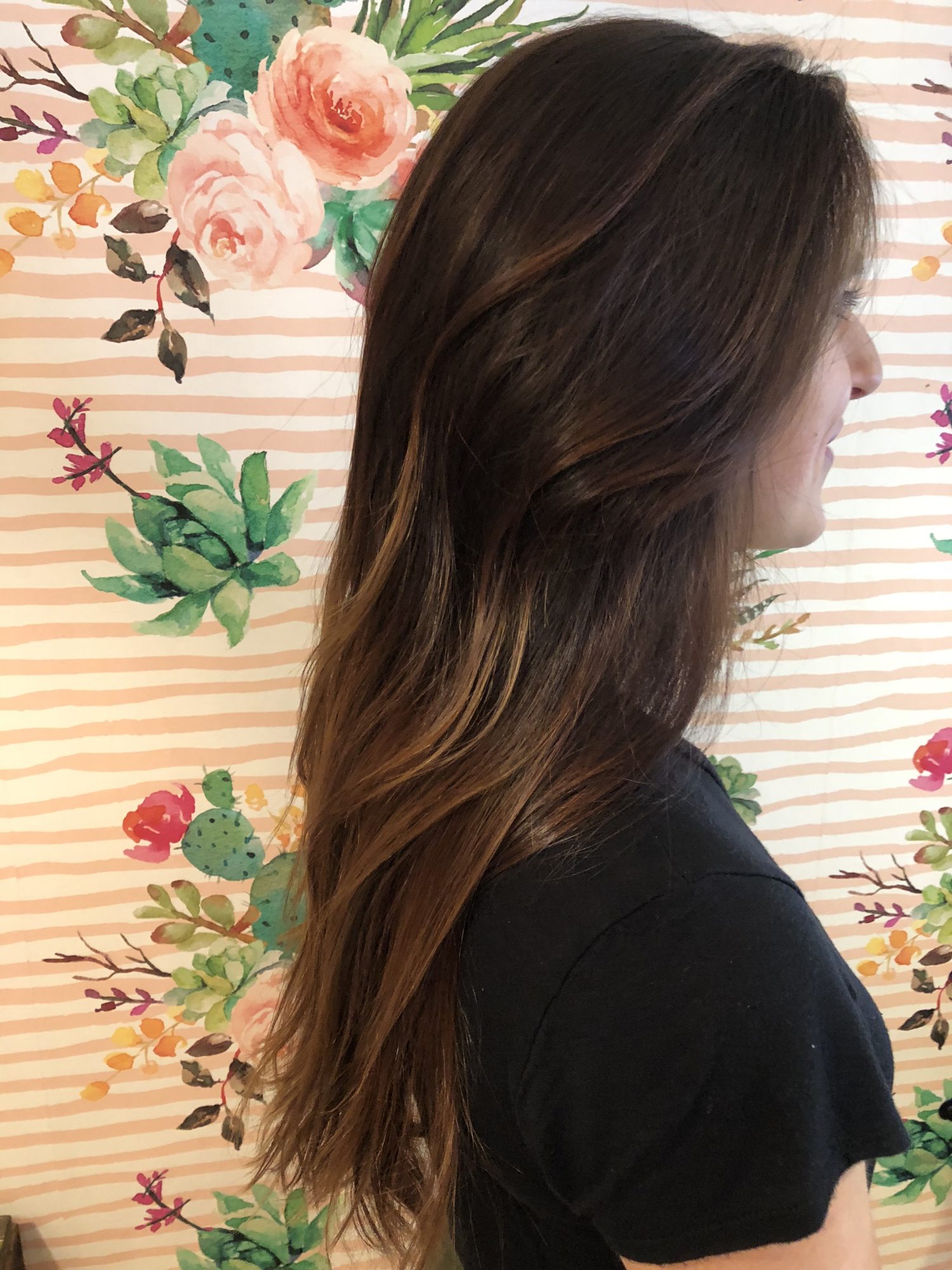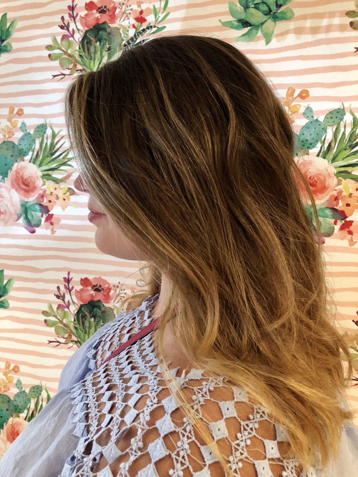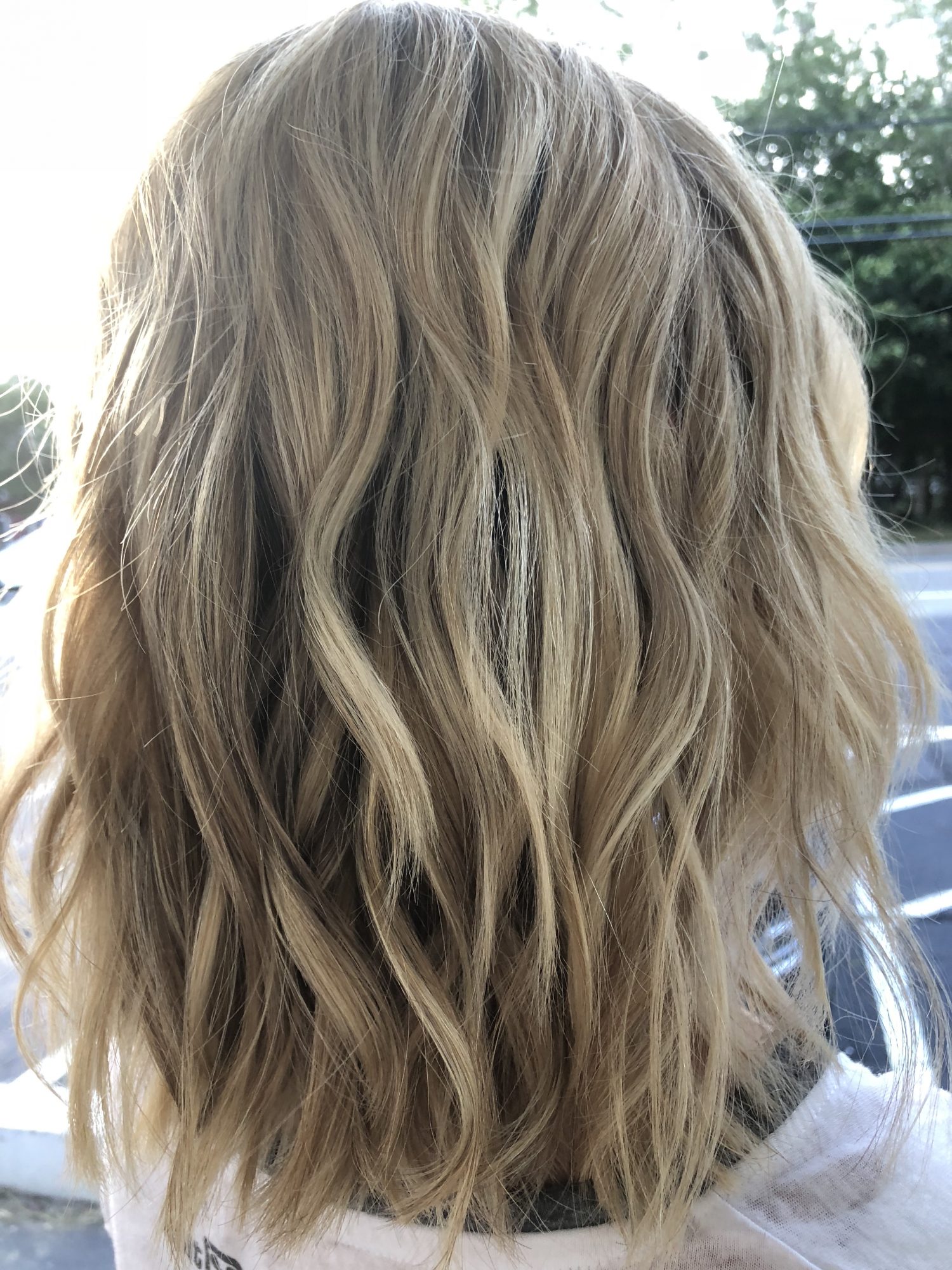 It all started when I was cutting (horribly) and coloring my own hair in high school. I really enjoyed changing up my look and thought maybe I can do this as a real job for other people someday and make them feel beautiful. I went to cosmetology school right after high school and loved every minute of it. After graduating, I began my career as an assistant at a salon. I assisted other stylists and learned the ins and outs of the salon. A couple years later, I transitioned into a stylist and was super excited. I was at the same salon for about five years. After I hit five years, I kind of had a mental block, wasn’t feeling inspired. I decided to take a break from doing hair. My break lasted about 9 months or so and I realized this is my passion and wanted to succeed in what I’m good at. During my break I worked with my dad doing construction and actually loved it!! I would do hair at home after work and really missed doing it every day! I finally realized my passion. So, I decided to get back in a salon and I couldn’t be happier! The salon I’m at now is the perfect fit and I really feel like I’m where I’m supposed to be.