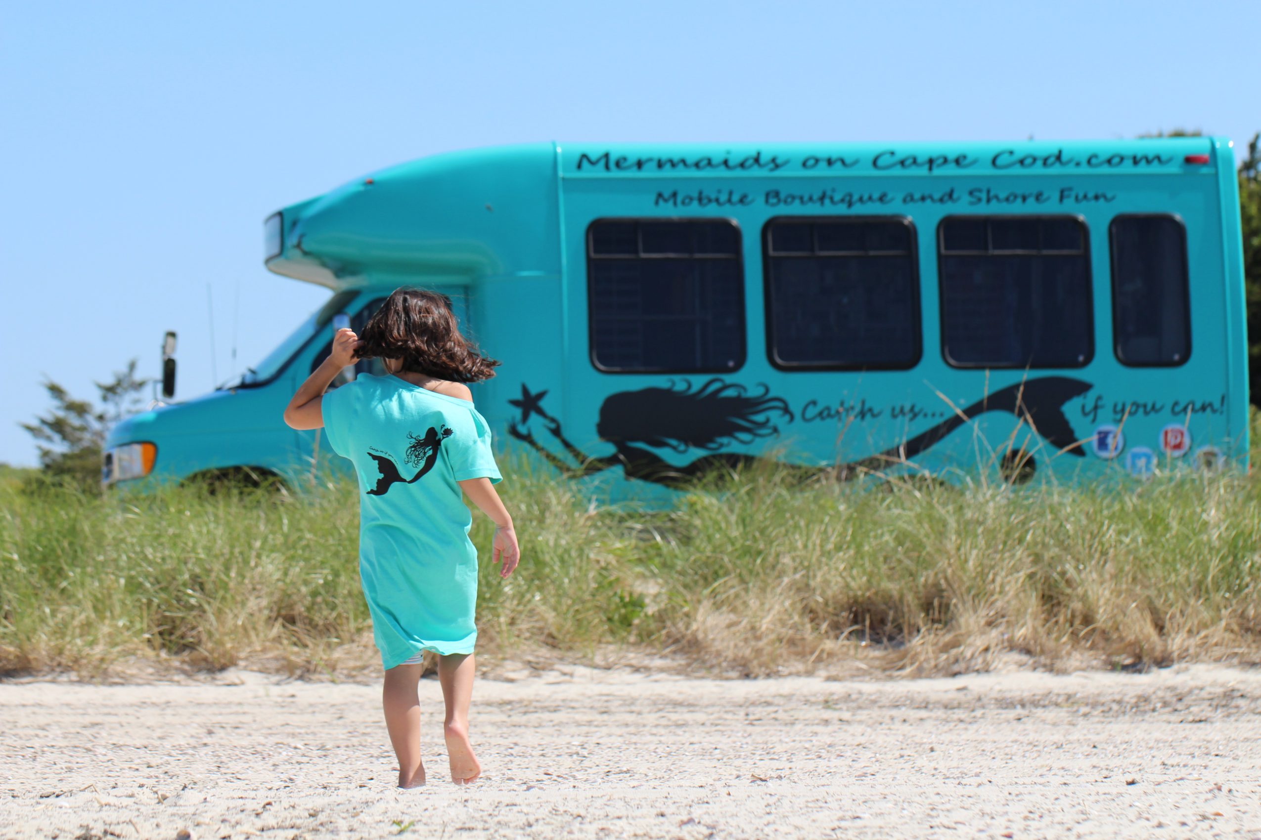 Mermaids on Cape Cod started out in 2013 as a little dream one sunny April morning- I thought a mobile boutique bringing mer-made items all over Cape Cod would allow me to be home with my kids while sharing my love of artisan designs & handmade gifts. I wanted to spend my time with Cape Codders and visitors alike. The bus became a reality 3 short months later and my small line of Official Mermaid Gear took off in waves! The OMG line is now nationwide and we continue to drive the big blue mermaid bus to house parties, offices, restaurants, and fundraisers all over Cape Cod & towns in Massachusetts. You can Book a Party next time you visit Cape Cod or Mass! The big news for 2018 is the Brick & Mortar location at 855 Main St, RT 28, West Dennis, Ma. We are super proud to have a place where you can always find us year round as part of a community.