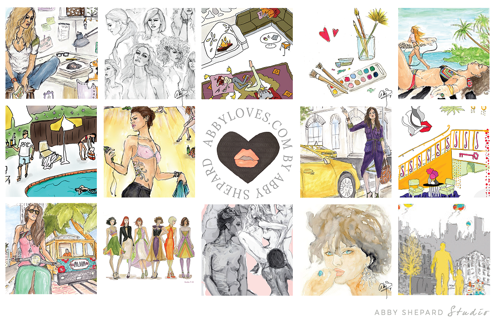 I launched my design studio in 2005, Abby Shepard Studio. I’d just returned from living in San Diego and was feeling particularly inspired. I’d had a vision of the type of work I wanted to produce but it wasn’t until 2007, when I studied fashion at MassArt that I really started to see the vision more clearly. In 2010, I immersed myself into an Illustration BFA at Lesley University’s College of Art and Design and expanded my studies to digital design, creative writing and visual narratives. It was exactly what I needed to tie together all of my creative passions as a Narrative Fashion Illustrator.