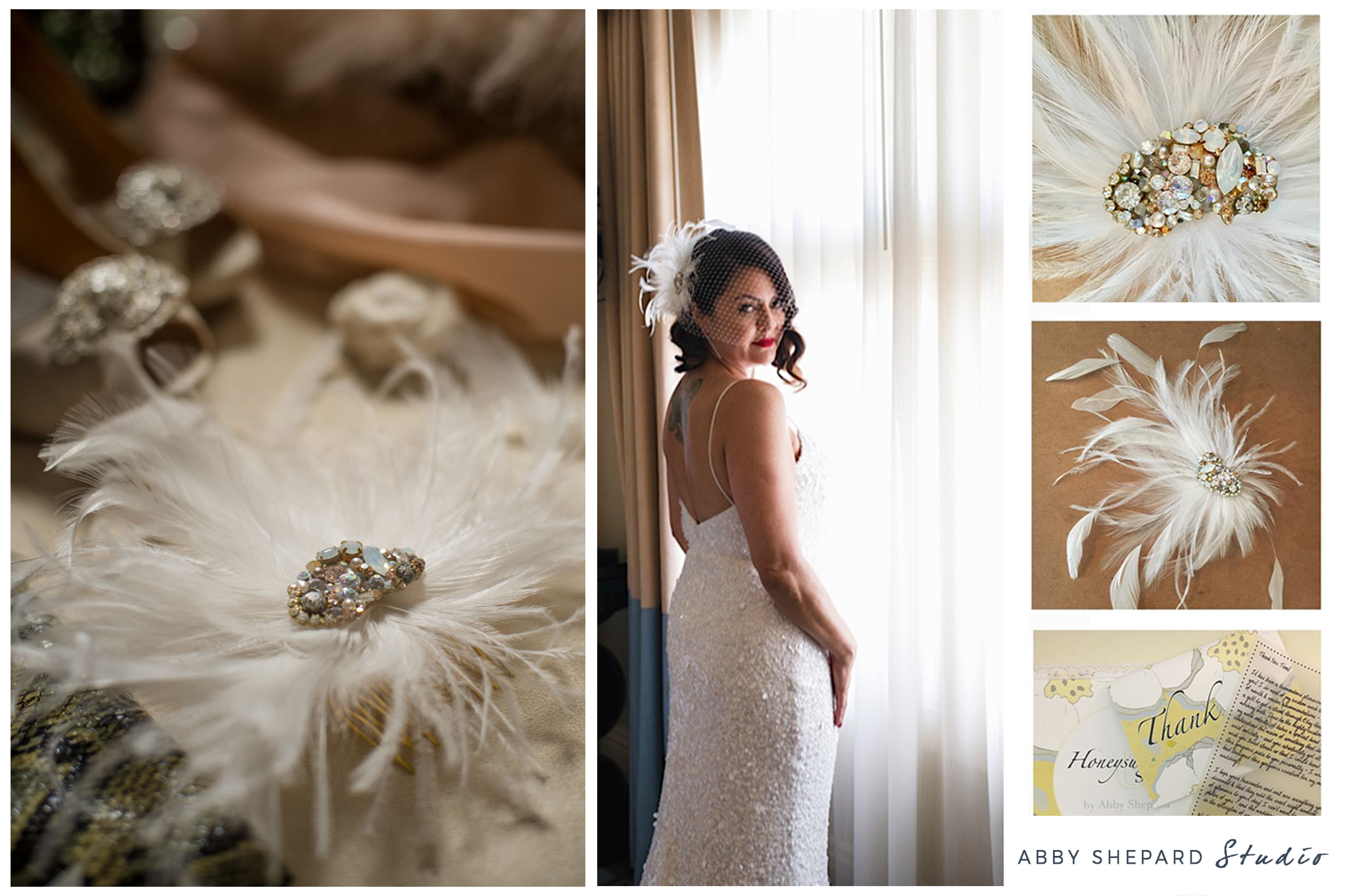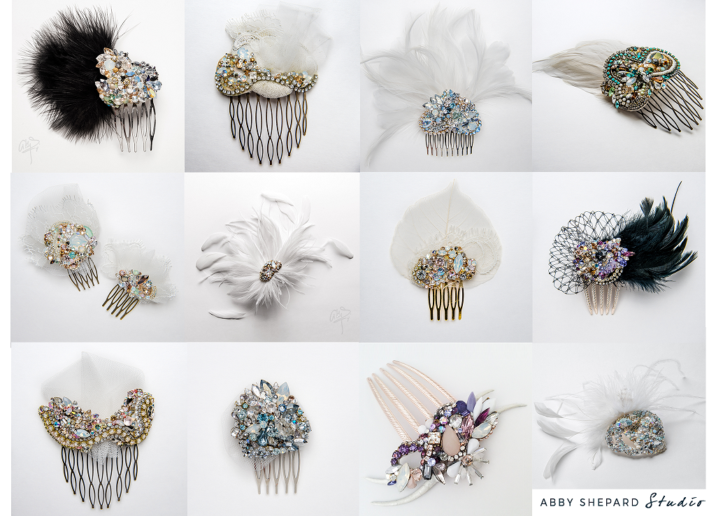 I should mention one other thing I offer in the studio that’s a bit different from the rest. It’s also the closest I get to my mom’s couture-design talents. I create custom, one-of-a-kind hair accessories for special occasions, gala events and weddings. It’s a branch of the studio I refer to as, ‘Honeysuckle & Scotch’ and due to the amount of time that goes into each piece, I only take on a few consignments a year. It’s a bit of a guilty pleasure, so I like to leave time around each project to enjoy them to the max. Each is entirely distinct from another and they are bound to the client’s own particular style. It’s a fun change-up to my other creative services and it’s the one place where the final outcome is led entirely by the materials as they come together. These pieces have a way of leading me through them, where most of my other work goes the opposite way. It takes a certain type of client to commit to a vision that doesn’t exist yet, but that’s what makes it so cool. The end result is always magical and lasting – and completely unique.