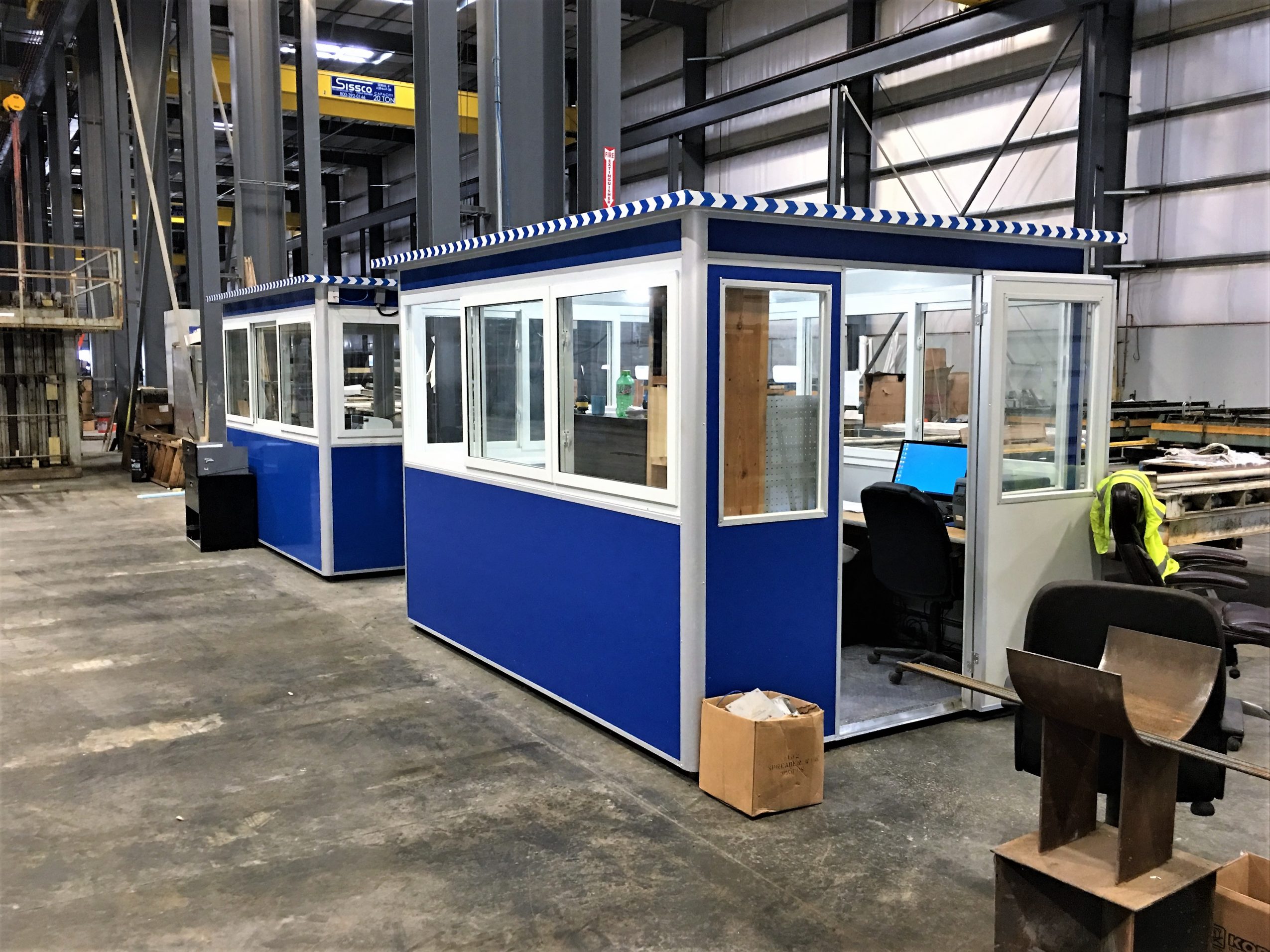 We manufacture prefabricated booths of the highest quality customized to meet the needs of our customers for guard shacks, portable security booths, ticket booths, cashier booths, gas station attendant booths, and modular factory offices.
