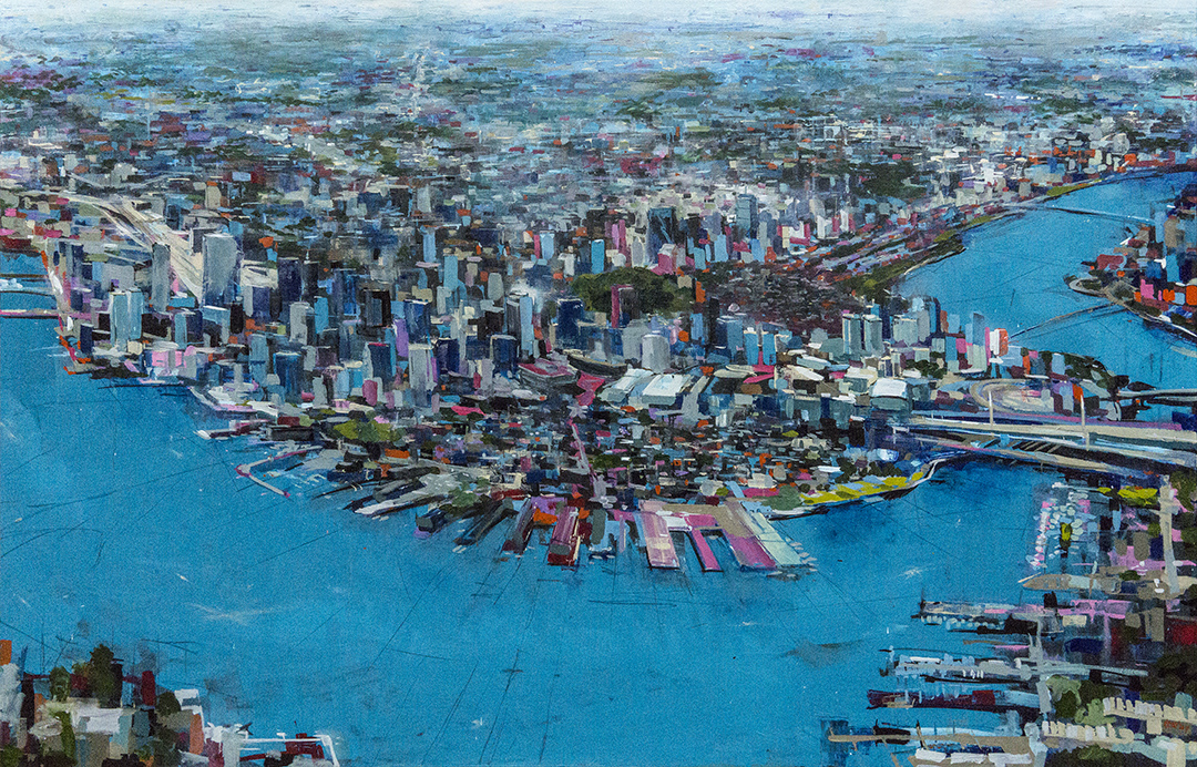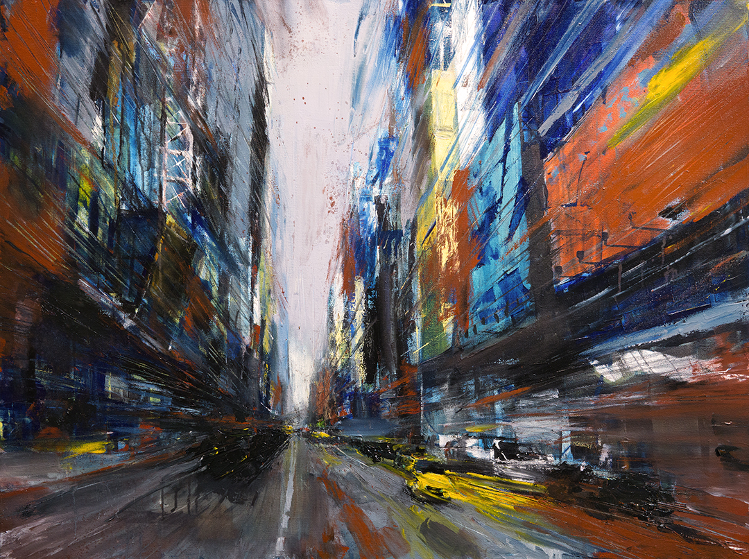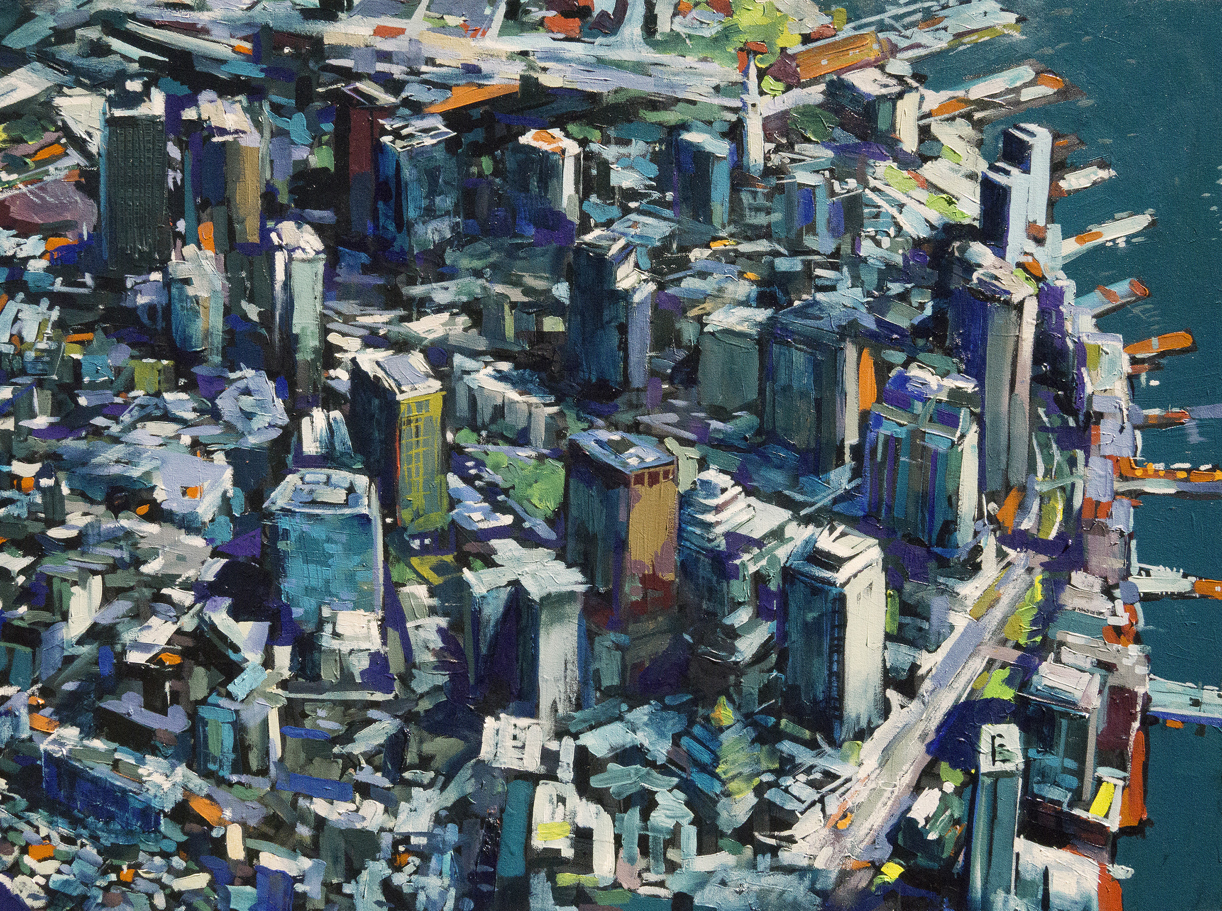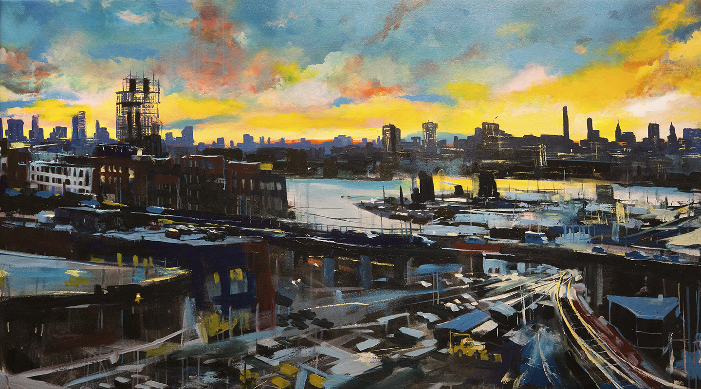 As I travel from Boston to Jersey City, Downtown Manhattan, Midtown, Upper West Side, Long Island City, and Brooklyn, I find myself transforming into a raw version of myself. You take yourself out of your comfort zone, and you start to be influenced by different elements, in turn affecting your creative output. I’m away from my wife and daughter for the first time in a while, and it’s the last trip I’ll take before our 2nd daughter is born. I’m staying with a dear friend in Manhattan and he’s letting me use his art studio too. It’s mid-September and it’s really hot, getting into the high 90s every day. I’m going to try to explain why this trip was so important and why this body of work is special. It’s a collection of paintings from Boston to New York City, telling the story of my late summer trip, 2017.
