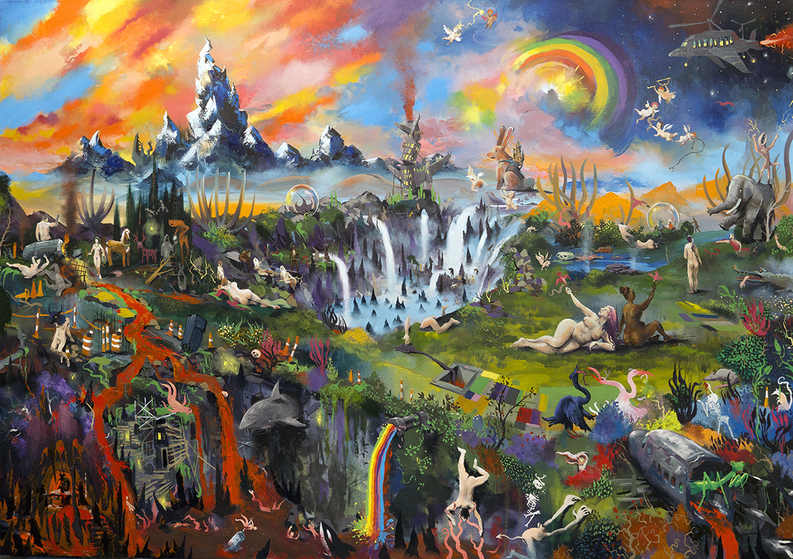 I’m Adam O’Day Fine Art, and I paint oils, mixed media, collage, large scale murals, author of kids’ books, design and illustration. In recent years, I’ve focused on oil painting and murals. But I do a fair amount of design work for bands, beer companies (Aeronaut), jewelry sellers (Exclusive Jewels), and a variety of others.