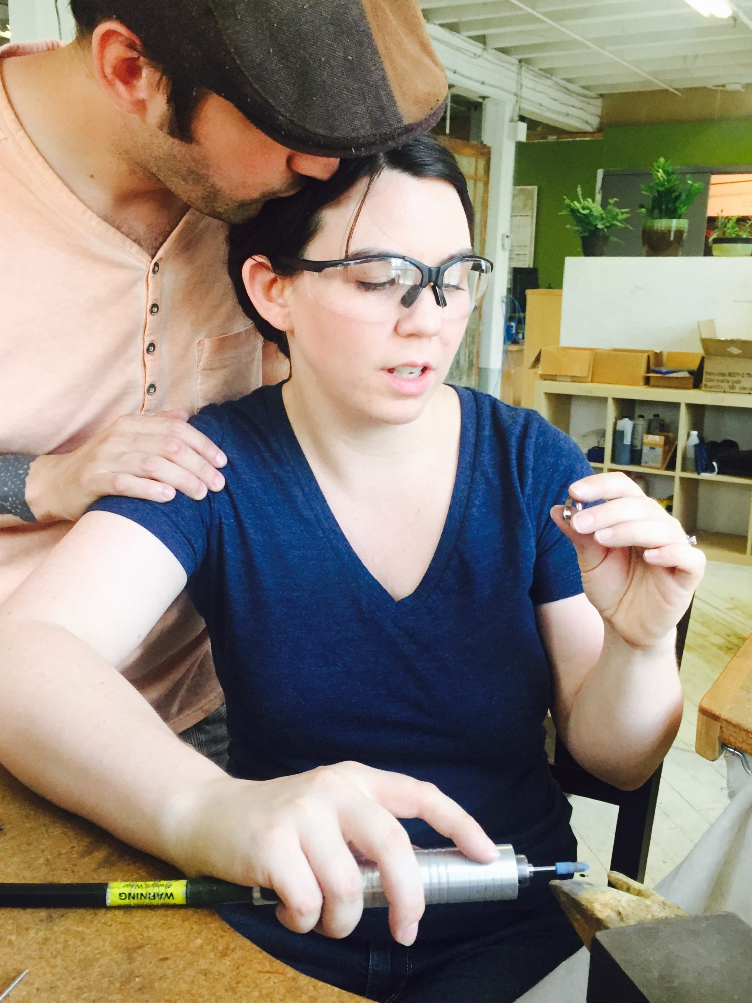 Of course not. I’d say it took me a handful of sessions to figure out the best way to help couples decide what they want their rings to look like and then teach them the best ways to execute that vision. Learning succinct ways to explain and demonstrate some of the techniques to complete beginners has been a process, too. After 7 years of hosting Wedding Ring Workshops, I think I have it down pretty good now and the sessions are fun, relaxing and even romantic for the couple.