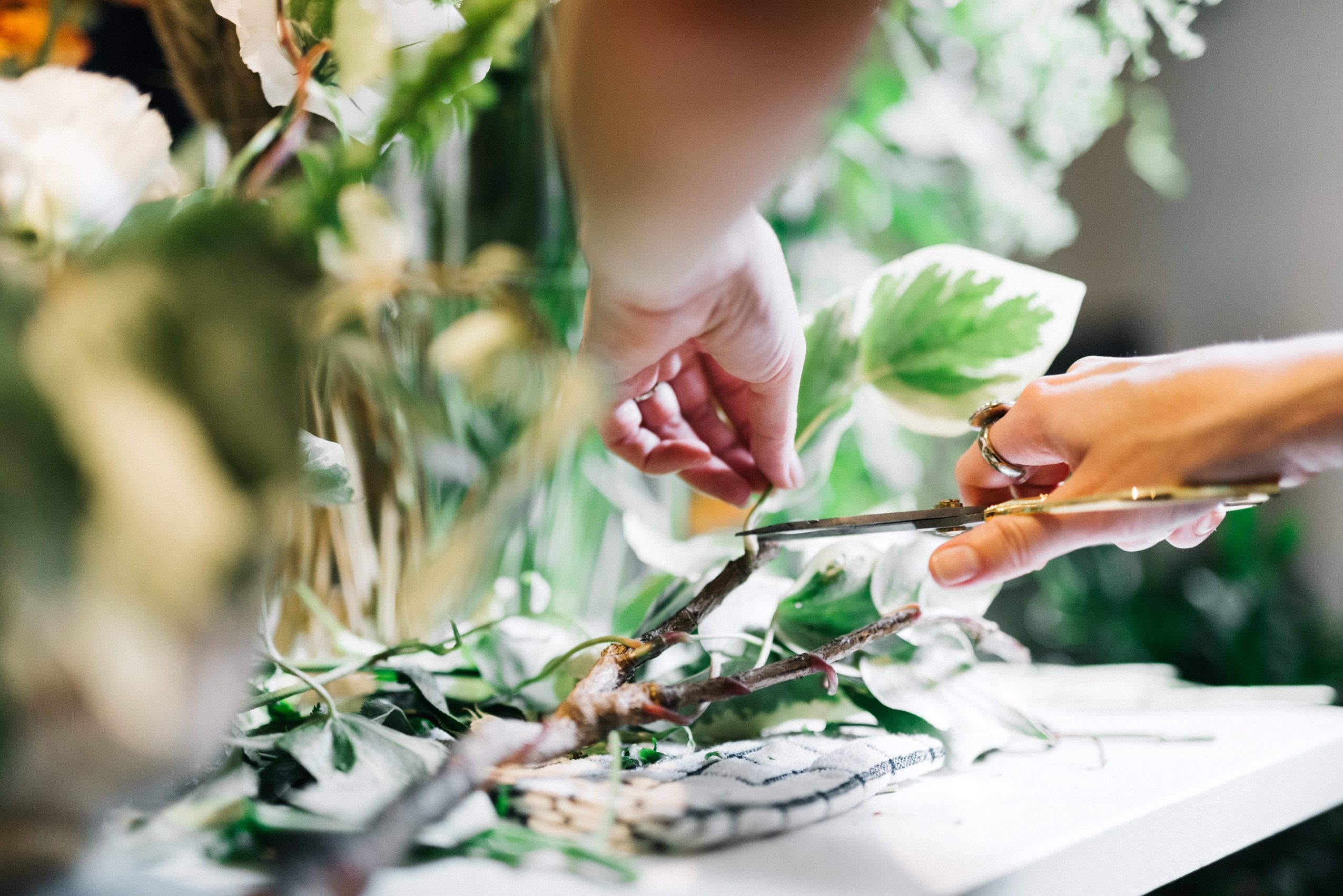 We are a full-service floral design studio, which means we design and execute decor for weddings and events, send out regular floral deliveries, and provide weekly flowers to local businesses and restaurants, as well as some other specialty projects. One of my favorite new offerings we have is the floral design classes which are open to the public. Clients can purchase tickets on our website, and we provide an hour of instruction before setting folks loose to create their own special, seasonal arrangement, which everyone takes home at the end of the class. Plus we have a great time mingling in our garden beforehand with drinks and hors d’oeuvres.