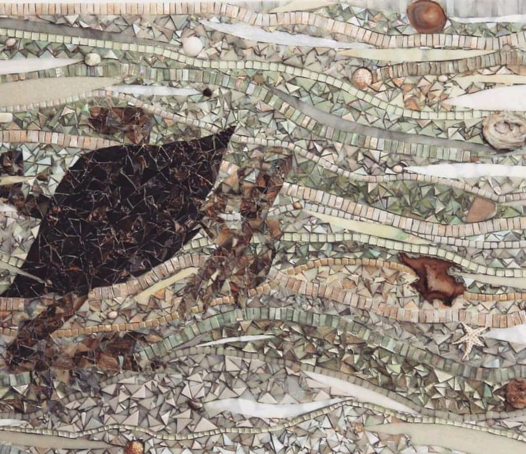 For a while I taught classes out of my studio, but now I focus on making custom artwork for clients’ homes. About half of my work is installed by contractors. People love how my work lets them know that their home is really theirs, not just a spec house that they walked into. Clients take pride in being involved in the design process and knowing that the work their getting truly reflects their tastes. I like to say that the glass “dances” in the light. The way my art looks in the morning light will be slightly different than the middle of the day or the late afternoon. It’s almost like the mosaic is alive.