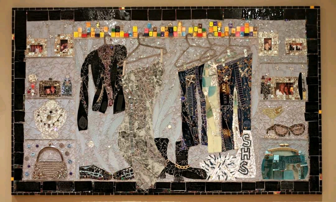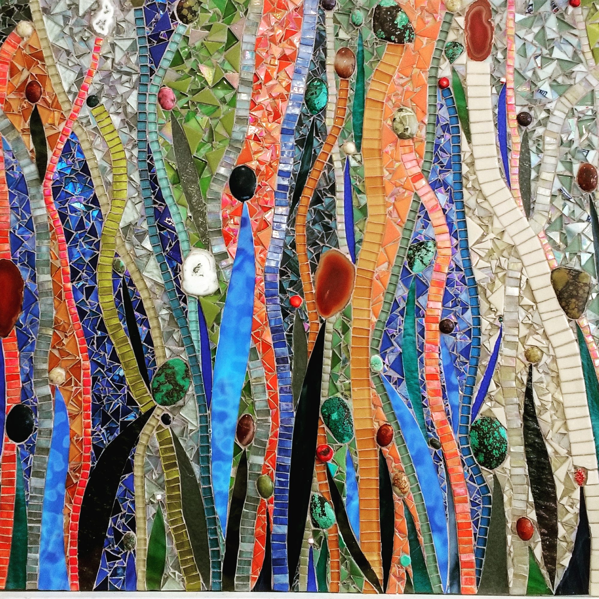 One thing that sets me apart from other mosaic artists is my use of multiple materials. I use many types of glass, including recycled/reclaimed glass. I also use stained glass which adds another level of texture. I sometimes use items that are meaningful to my clients like jewelry from their grandmother or aunt.