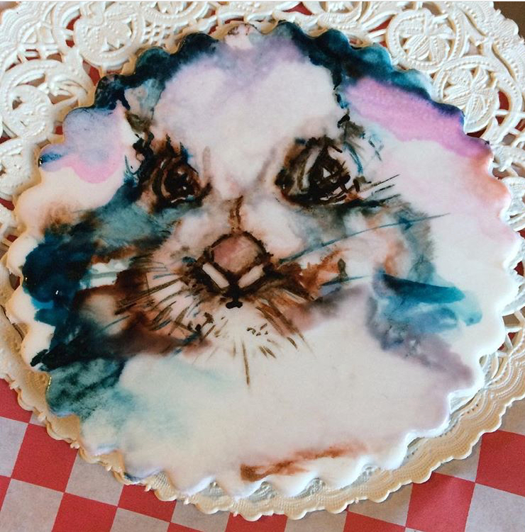 Initially most of my business was coming from the cake end. I specialize in painting on fondant. I treat it much like a canvas. It is quite fun, and requests have come in for portraits of people, animals, co. logos. etc. The best part of the cake business was dealing with kids. There was nothing better than seeing their faces when they got their cakes.