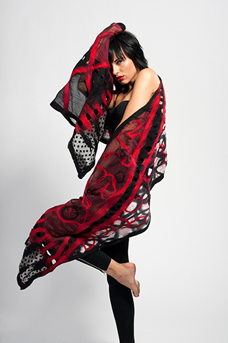 I was a full-time painter up until 2007 when the market crashed and I saw my sales disappear. At the same time my husband lost his job, my kids were entering college and we were about to lose our house. I have always been a person who loves to make things and I was experimenting and making my Nuno felted scarves and people were buying them off my body.
