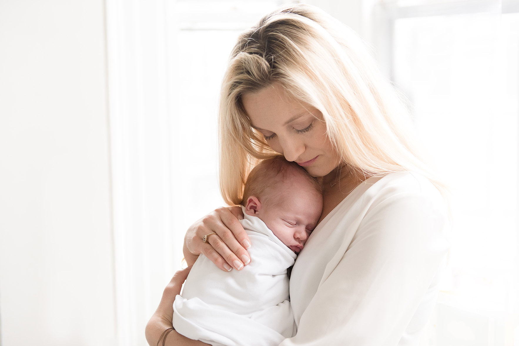I offer both in home and lifestyle studio newborn sessions. In home sessions offer my clients the convenience of me coming to them and the opportunity to incorporate areas of the home, nursery and other personal details into the session. My Back Bay studio is an all-white space furnished with a couch and bed for naturally posed lifestyle pictures and blankets for posing baby. It has a large bay window that provides some of the dreamiest natural light I have ever found. My studio sessions feature the same natural baby and parent posing as my in home sessions and are perfect for those that love the light airy look but don’t have that type of space or light in their own home.