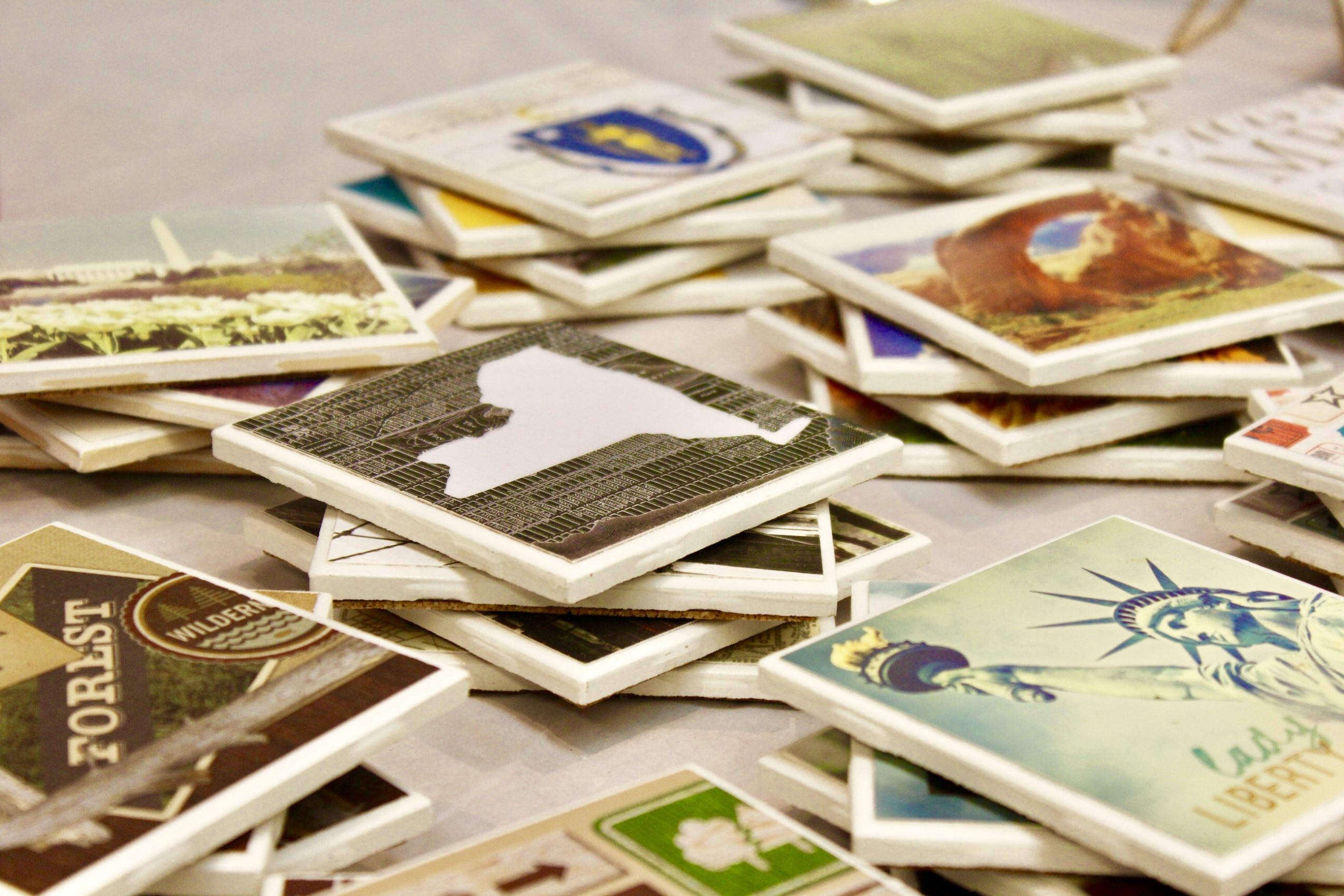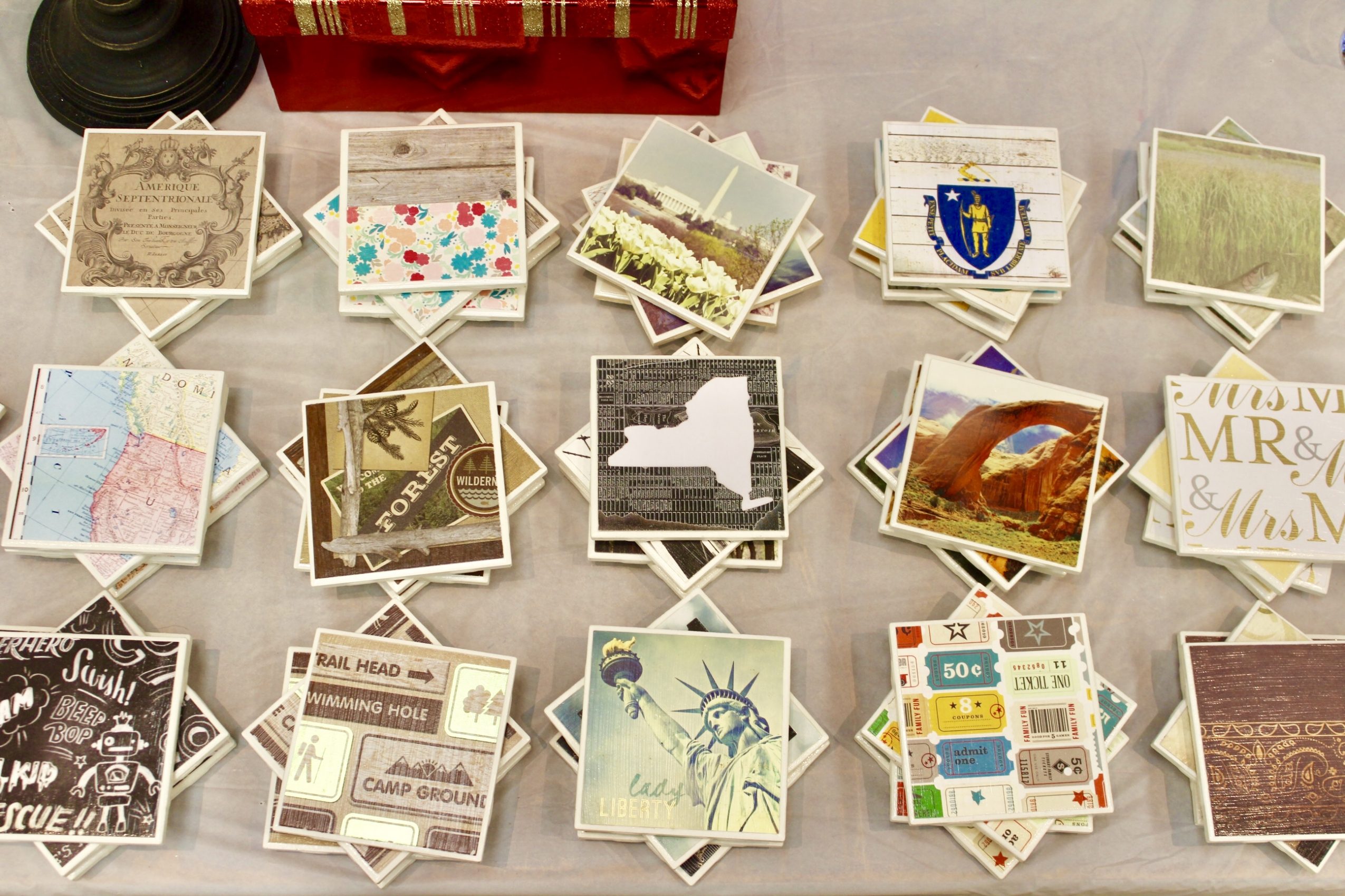 The first coasters were made as gifts for family and friends and are now designed based on requests as well as seasonally. Other products including ornaments and wreaths are now sold in our shop too. We specialize in creating custom coasters with photos, tickets, cards, etc. that are created for the individual and family. We have also produced coasters with company logos to be used in offices and as gifts.