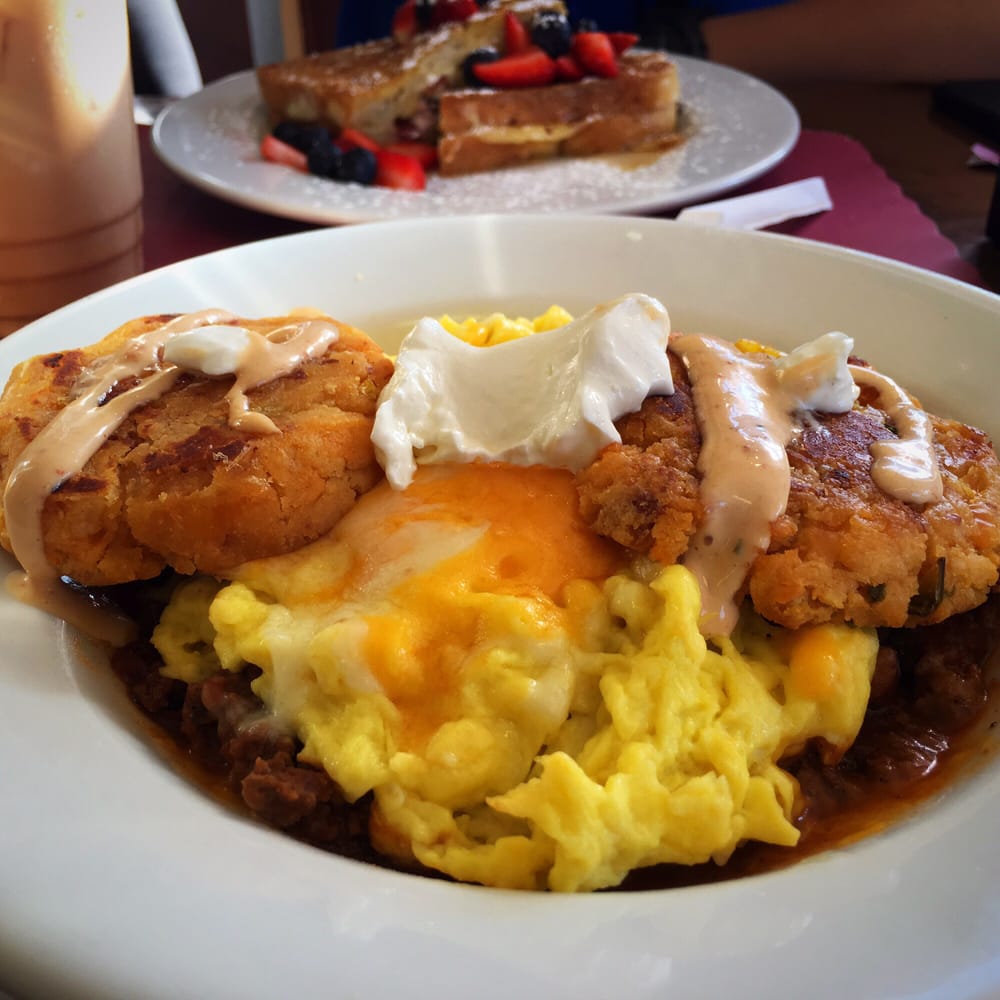 I guess I would call us a specialty breakfast and lunch restaurant. While we provide the same breakfast and lunch items as other places (eggs, bacon, Eggs Benedict, sandwiches etc.) we put a twist on many of the items. For example we have several twists on Eggs Benedict : The Cowboy Benedict – An oven baked biscuit topped with our homemade pulled pork 2 poached eggs and smothered with BBQ hollandaise sauce, the Italian Benedict – On Oven Baked Croissant butted and grilled with our homemade pesto, topped with grilled prosciutto, 2 poached eggs and smothered with pesto hollandaise sauce. Our breakfast Bowls: Mexican seven Layer Bowl- Our famous AuGratin Homefries on the bottom of a bowl, topped with black beans, scrambled eggs, salsa, melted cheddar jack cheese, avocados, a dollop of sour cream surrounded by grilled flatbread, The Rueben Bowl – Our homemade slow cooked corned beef hash on the bottom of the bowl topped with scrambled eggs, our “rueben cream cheese mixture” (cream cheese, sourkraut, and Thousand Isle dressing combined), melted swiss cheese, a drizzled of thousand Isle dressing surrounded by Rye toast. Or our Conquistidor Lunch Sandwich – Swiss Cheese, Turkey, Caramelized red onions, avocado, tomato and our Chipotle Mayo, grilled to perfection on our oversized wheat bread. You get the gist. We do cool food. The thing I am most proud of is how much our customers love us. They constantly go out of their way to compliment us, many times sticking their heads into the kitchen window or even marching right into the kitchen to tell us what a great experience they had, from the food, to the friendly atmosphere to the wonderful service. An at-testament to this can be found on ALL of the social network review sites where we always get very high ratings. If we don’t which happens once in a while, we don’t take offense, we look into what went wrong and fix it. To us the customer is truly always right.