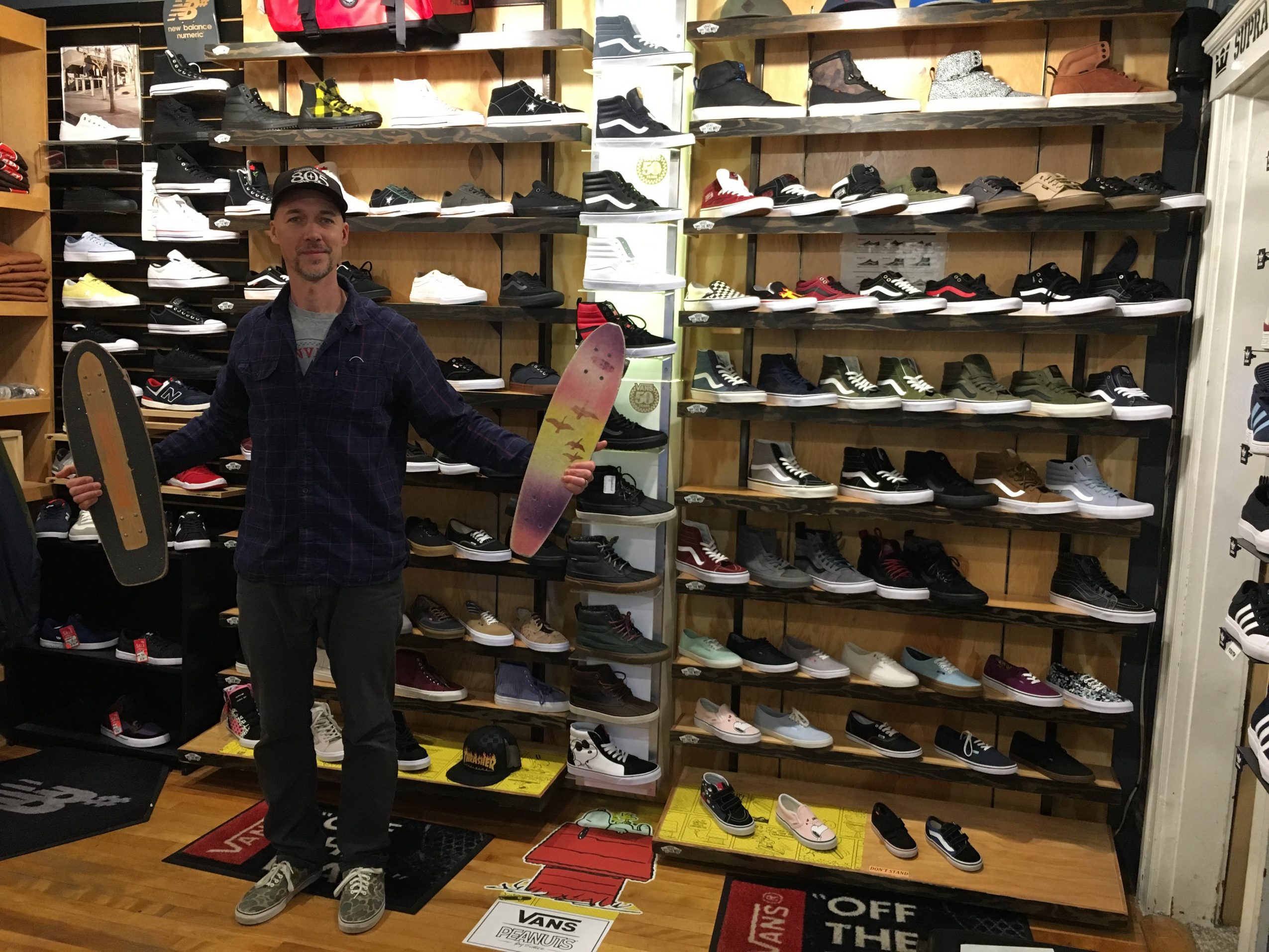 We started off selling skateboards, sneakers, and skate clothing. A year into it, we added snowboards. We specialize in skate and snow and footwear and the brands that fit with the culture. Footwear is our stable part of the business and we have a really really good following for the brands we carry- Nike Sb, Adidas skate and originals, Vans.
