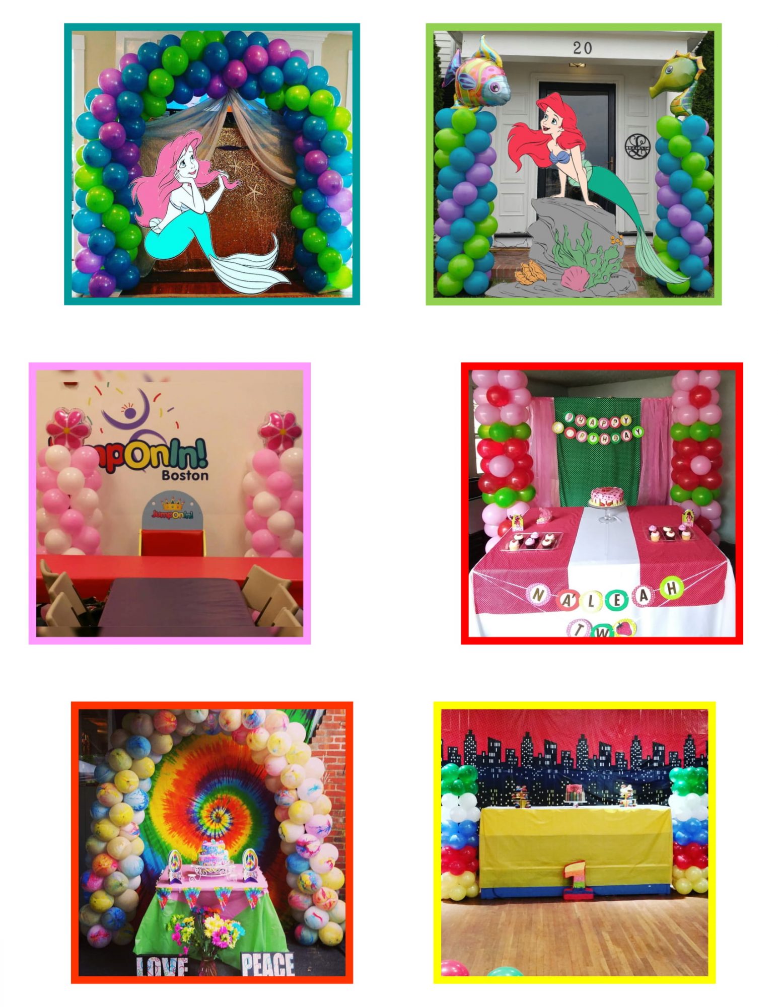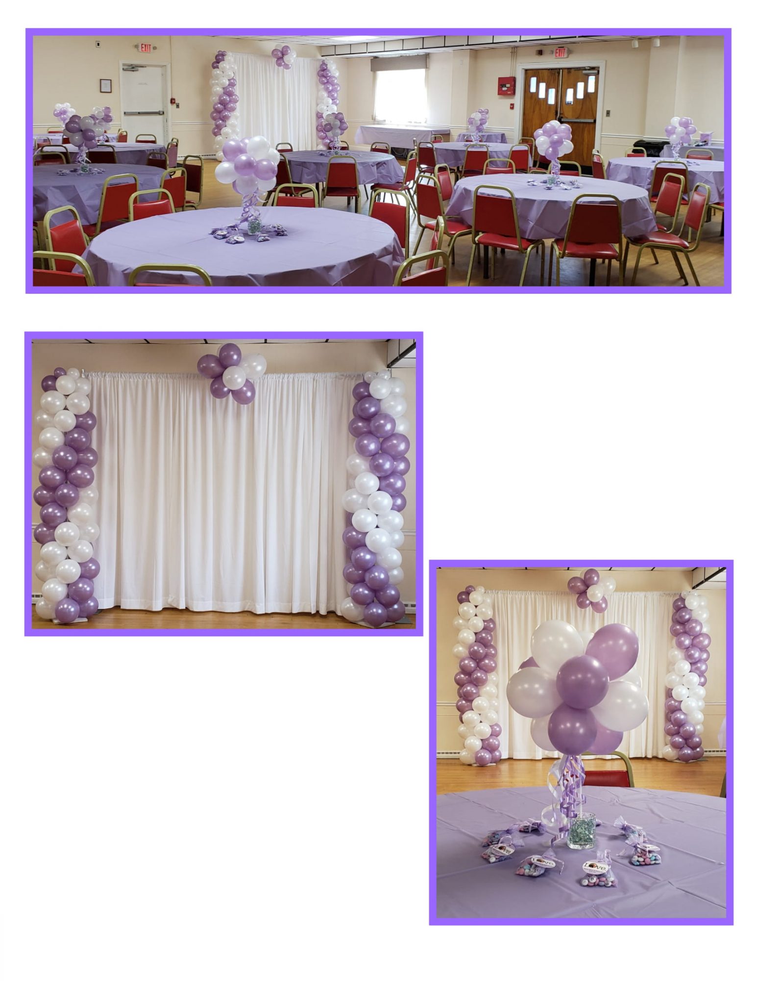 Fairytale Moments Events decorates for events. We also provide services as the need for our clients in coordinating and planning. When we are asked to decorate, we work with our client’s visions. We offer basic items like tablecloths and other table linens, chair covers and sashes, and customized backdrops. We also provide balloon decorations from loose balloons on the dancefloors, balloon bunches, to balloon columns, arches, and centerpieces.