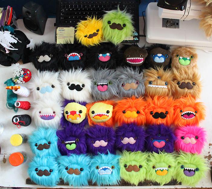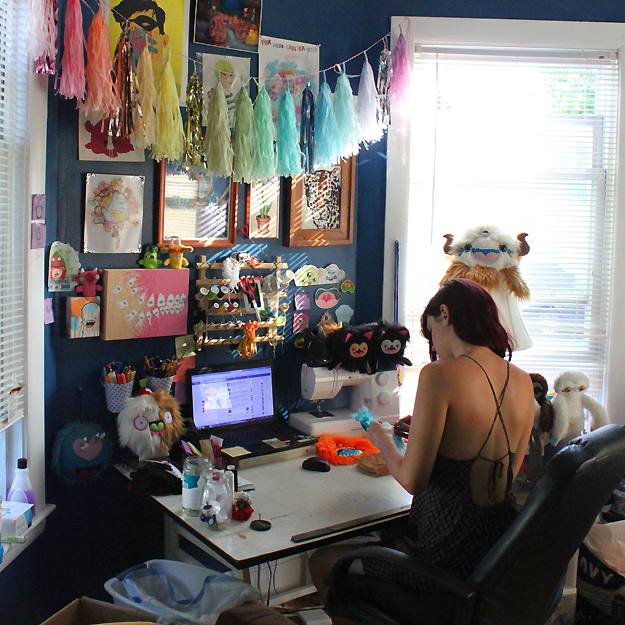 I started making toys and other crafts around 10 years ago. I was working at an arts & crafts store and had easy access to all these different mediums to try. I tried out a whole bunch of different things, but once I took sheets of felt and cut them into little creatures people seemed to really respond to them. I was making them just as gifts and for fun at first but once I had posted them online to show them off people were asking to buy them. I was super surprised and excited by it, and it motivated me to keep creating. I was in college at the time, and I was getting so many orders for custom monsters that it was getting in the way of my schoolwork. I wound up dropping out of college after a year and a half to just pursue making art full time.