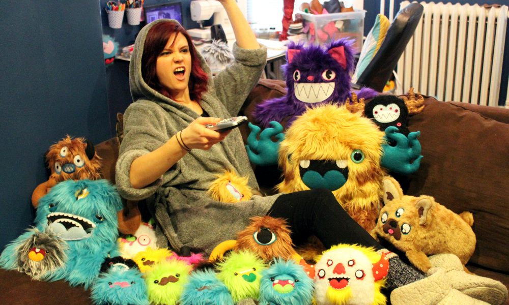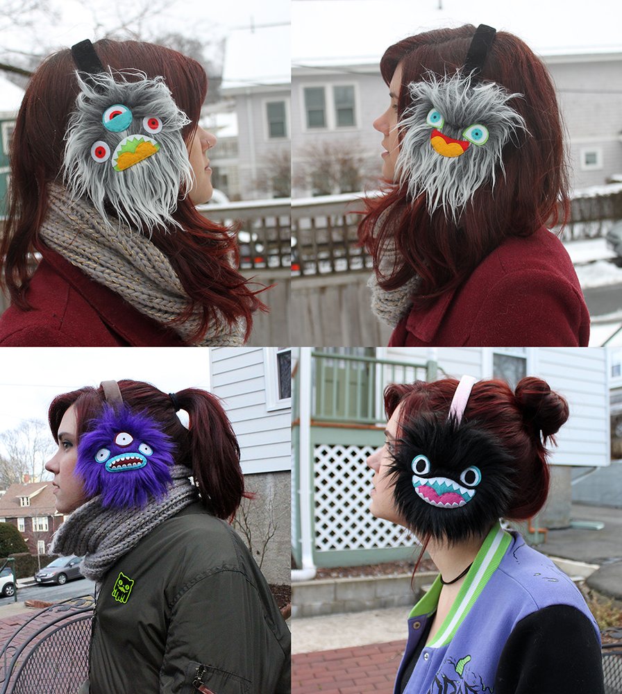 I started out only drawing, it was my obsession. But I doodled little creatures and monsters a lot that I liked but were too simple to really be any sort of good illustration. So I started taking them and turning them into 3D with felt, fleece, and faux fur. That is definitely what I am most known for at this point, making stuffed creatures out of colorful faux fur. I’ll make monsters out of my own imagination, I make ‘fanart’ toys of characters from movies and TV, and I work with customers to make their ideas of things into reality. I also make fur hats, pins, patches, earrings, pillows, embroidery hoops, shirts, and I illustrate. Really whatever people ask me to make, or what I feel in the mood to make, I will.