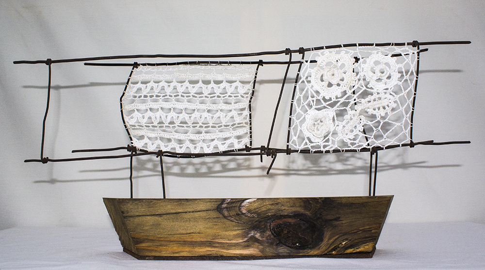 While studying for my bachelors in fine arts, I realized that I desired to make my education limitless. I set out to learn as many different ways of making as possible. If I wanted a sculpture to be one a welded steel base, I learned how to weld, if I wanted to include hand made lace into a piece, I learned how to make lace, etc. The idea for a project often comes before I know how to accomplish building it. Making the work then becomes a mental and physical exploration for me to make my vision reality.