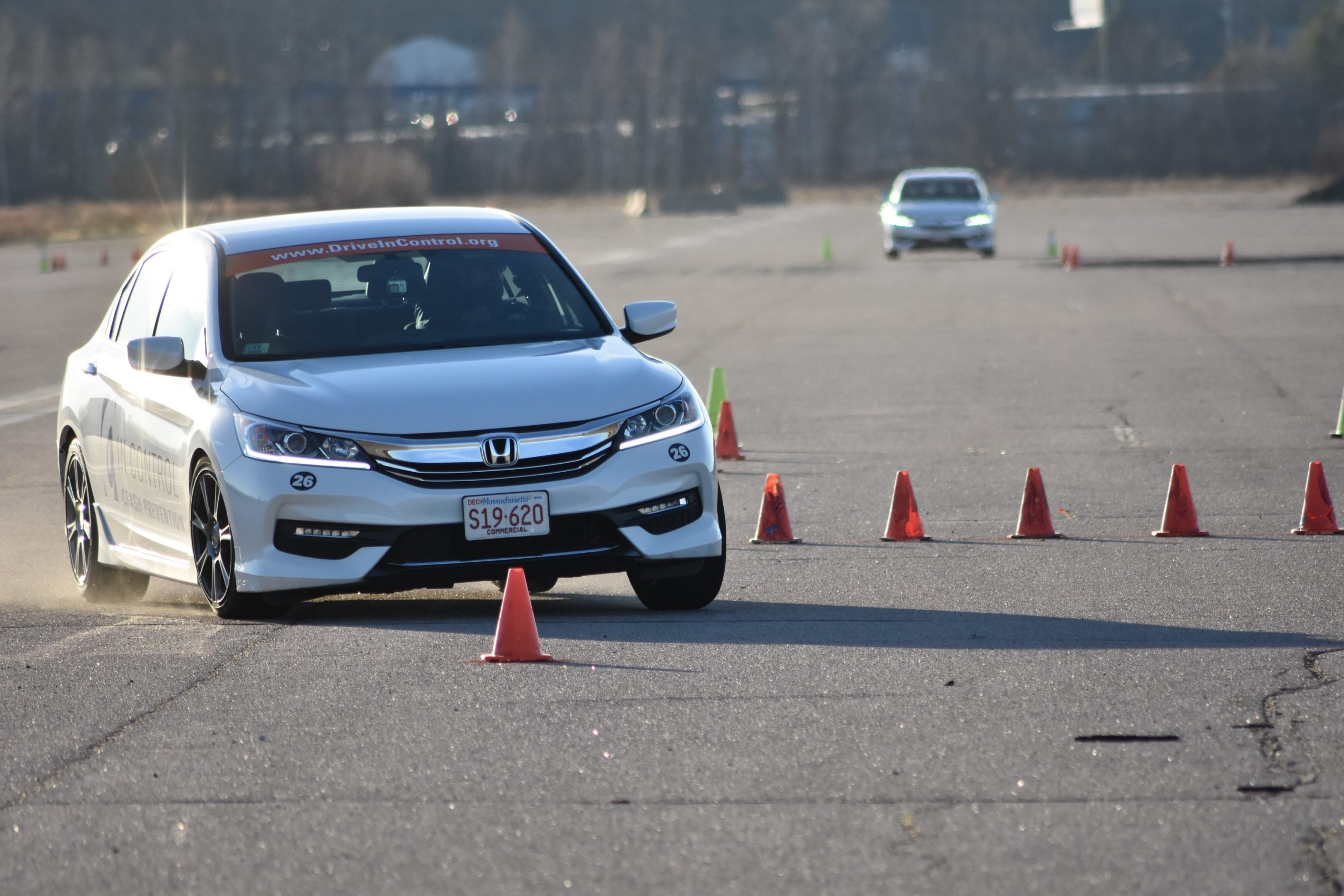 Our crash prevention training course is very unique. There really is not anyone else doing this level of training in Massachusetts and as you look across the country, there’s nobody doing it as well as us. We perform real-world emergency drills at real-world speeds. The first drill anyone taking our course performs is a 50-65 MPH panic stop. Whether you’re a 15 year old from NH or the 94 year old graduate we had a few years ago…or any age in between, slamming on the brakes at 65MPH can be intimidating…but it could be necessary anytime you’re traveling that speed. What’s interesting is that those trainees that freak out when performing this drill will pick up their foot off the brake pedal…resulting in taking way too long to stop and hitting a wall of cones we set up….the interesting part is that when they repeat the drill…100% of the time, they stop without any trouble. They’re no longer intimidated by how the car behaves and they just do what they need to and avoid a crash.