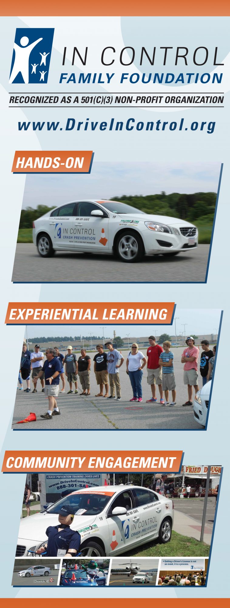 In Control has one mission divided into two functions. Our goal is to drastically reduce injuries and deaths due to automobile crashes. We do this through hands-on, closed course training as well as community engagement.