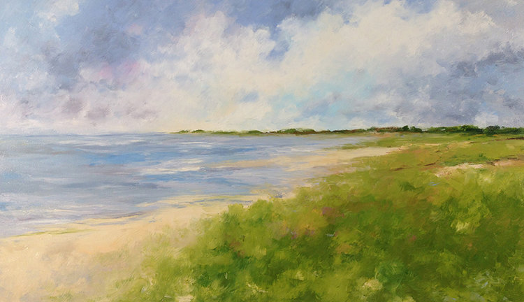 I am an oil painter and I make different kinds of work including figurative and abstract but I am concentrating more on landscape these days. I am fortunate to live in a part of the country that is so picturesque. The Maine coast and the tidal marshes nearby inspire my landscapes. I hope to evoke the feeling of being in the landscape by communicating the quality of light, color, and vastness of space. I most often work from imagination, memory and intuition to convey atmospheric perspective and timelessness in nature. I am an artist because I want to know what it is to be alive. I want my paintings to reflect a moment in time as an experience of what it is to be human tethered to this mortal coil.