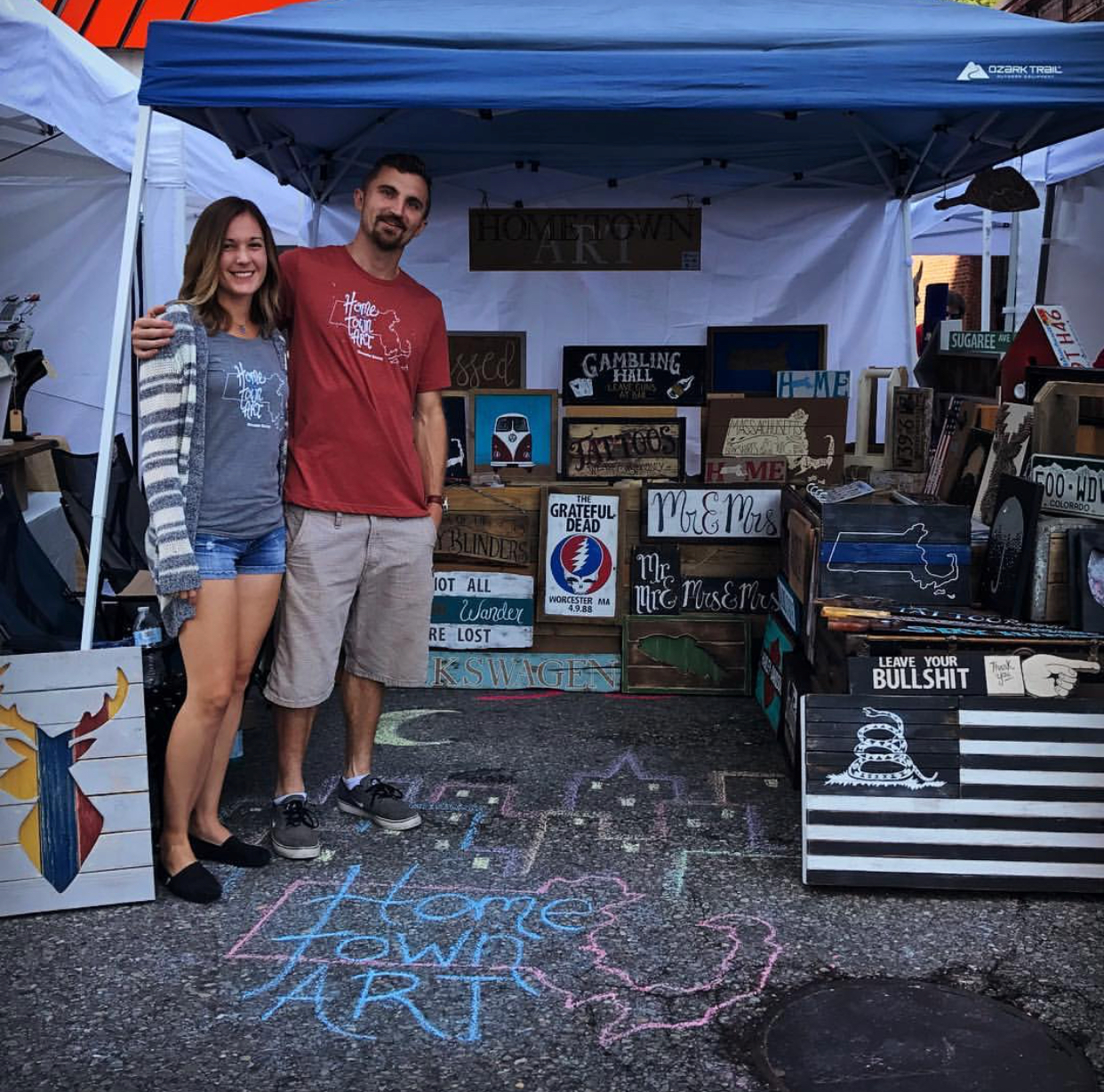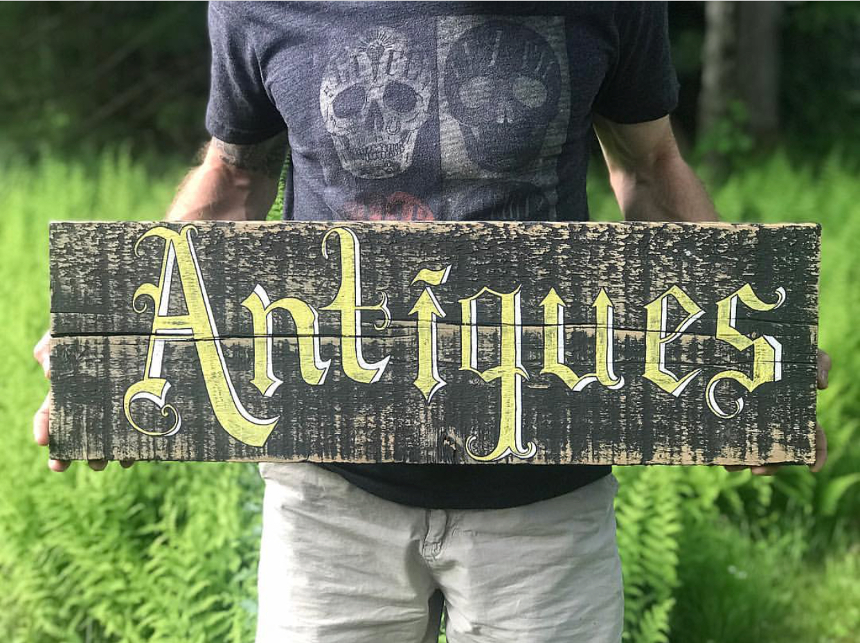 Growing up as a kid I use to take private art classes as early as 14. I was never really book smart, I always thought outside the box or classroom!!! I took art classes throughout high school probably everyone they offered. I always enjoyed going to art museums, craft fairs, and flea markets over going to the mall as a kid. After high school I really lost touch with my passion of arts due to my alcohol and drug addiction. 5 years ago when getting sober I dove back into drawing. I remember going to a craft fair with my wife and they’re wasn’t really much but candles, leggings, and blankets, not much to offer to young arts adults. At the time I was drawing a lot and my wife told me you need to start doing these. So that’s when it begin I started off by just painting and creating stuff out of wood pallets or free wood on the side of the road, and stocking up inventory. Throughout the years my art and craft has developed a lot. Today I mainly up cycle pretty much anything I can repurpose. From custom furniture to one of a kind signs. My early mornings on the weekends I spend driving back roads of New England looking for antiques and someone else’s junk. You can find me at craft fairs, farmers market, and now my own little shop in my home town of spencer.