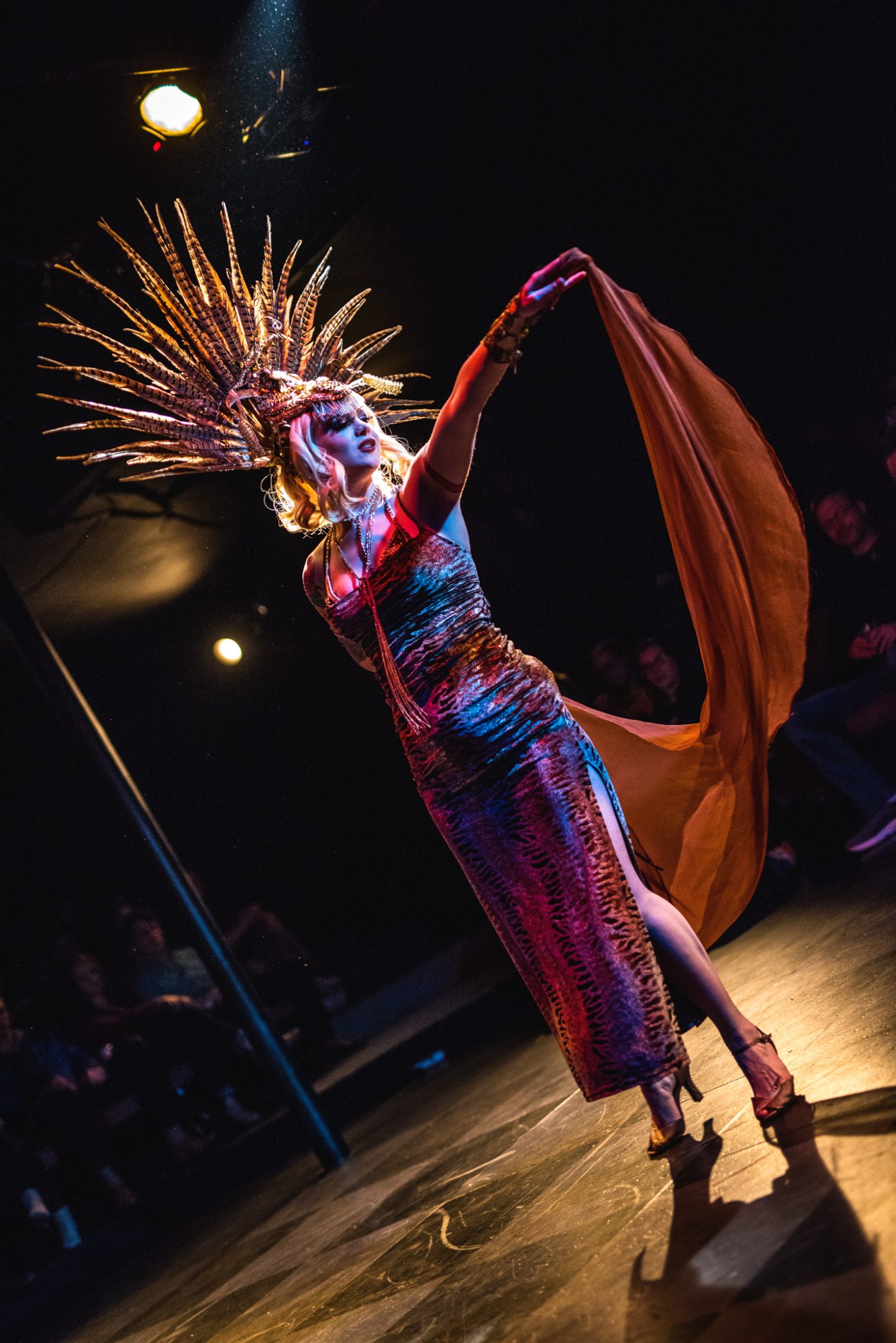 The strongest current I’m constantly swimming against is misconceptions about the form. It’s not mainstream in Boston, so I have to either establish what it is to someone (whether it’s an audience member, venue, or business I’m trying to work with), or I have to undo an inaccurate perception and then build it back up. Understandably — it’s a strange form! It’s stripping, but it’s not club stripping. It’s not voyeuristic and it’s not tailored to the individual viewer’s desires. It’s less about the body parts and more about the character, the transformation, and the story behind it. But performers still want to titillate the audience, on their terms and their terms alone. Newcomers to burlesque have to develop a baseline etiquette and literacy before they can tap into and benefit from that exchange.