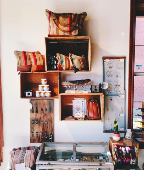 I first started sewing the bags for myself because I preferred pouches over big purses that every woman lugs around. My husband and I launched the line right before Christmas and was quickly recognized and loved by many. Vaalbara bags are all handmade with love in Venice, California. Each of the bags are one of a kind and all are lined with 100% recycled plastic bottles. All of the leather used in the pieces is local Californian cow and bison hide. Our store opened 2016, in Newburyport, MA, where I grew up and my family is from. It was always a dream of my sisters and mine to have a business together. Our store carries a variety of hand crafted goods locally made and collected pieces from travels.