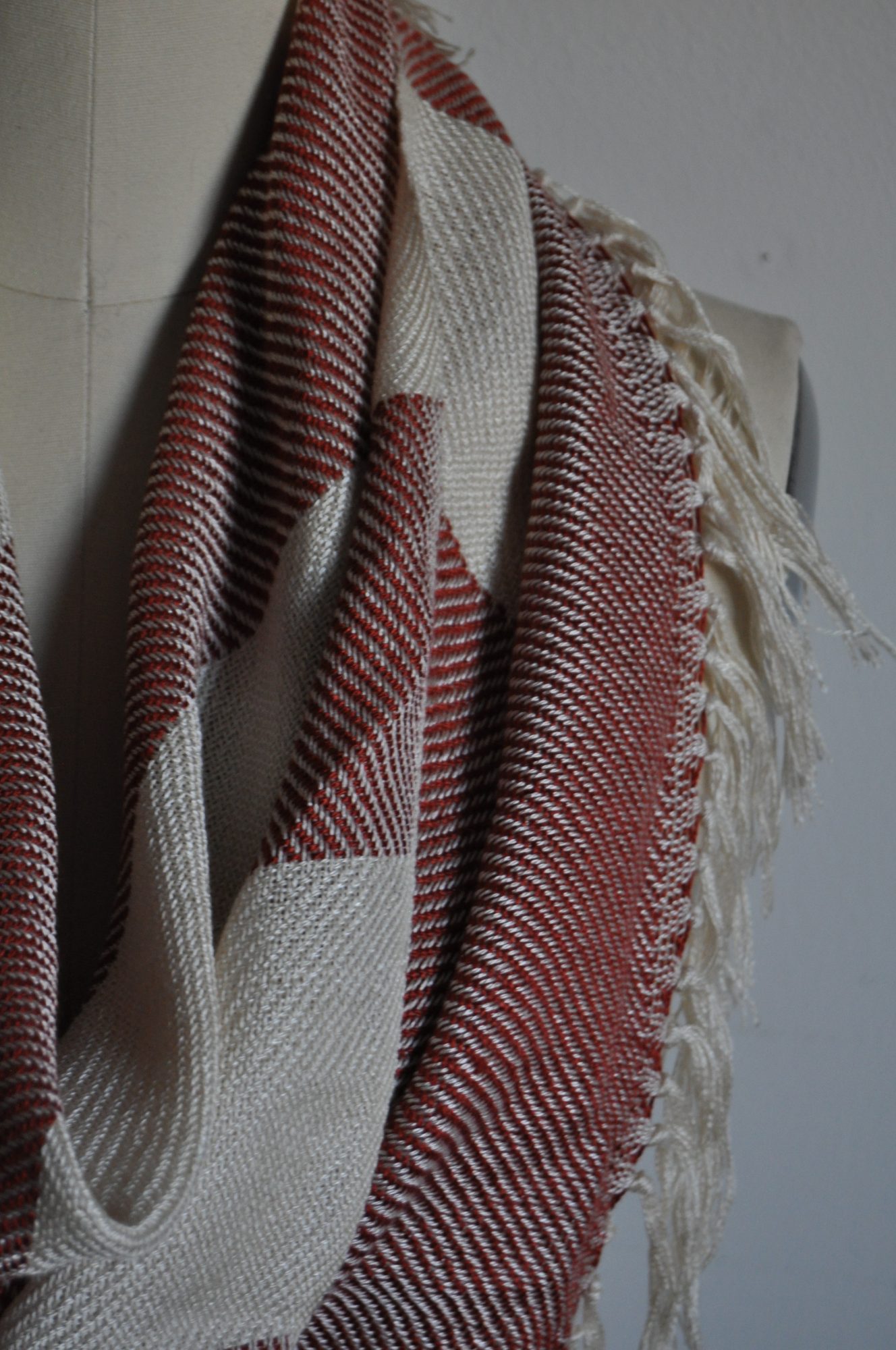 My passion for weaving began back when I was a student at MassArt. I had toured the Fibers department and completely fell in love with the loom room and knew I had to learn how to weave. It’s a very technical, labor intensive art form and that’s what I love about it, there are steps to follow but it still allowed for creative freedom, it hit all the marks for what I was looking for. I’ve been weaving now for about 7 years and still love it. It wasn’t until senior year I really started to consider having a small weaving business and being able to put my weavings into the world. I decided in 2017 to finally take the plunge and open up an Etsy store with some scarfs and household items. Previously I had only sold my work at small local sales and through private commissions so it was quite a difference to jump into the online retail world. I had to teach myself a lot about the platform and running a small business, it’s a never ending work in progress but it’s been fun and rewarding.