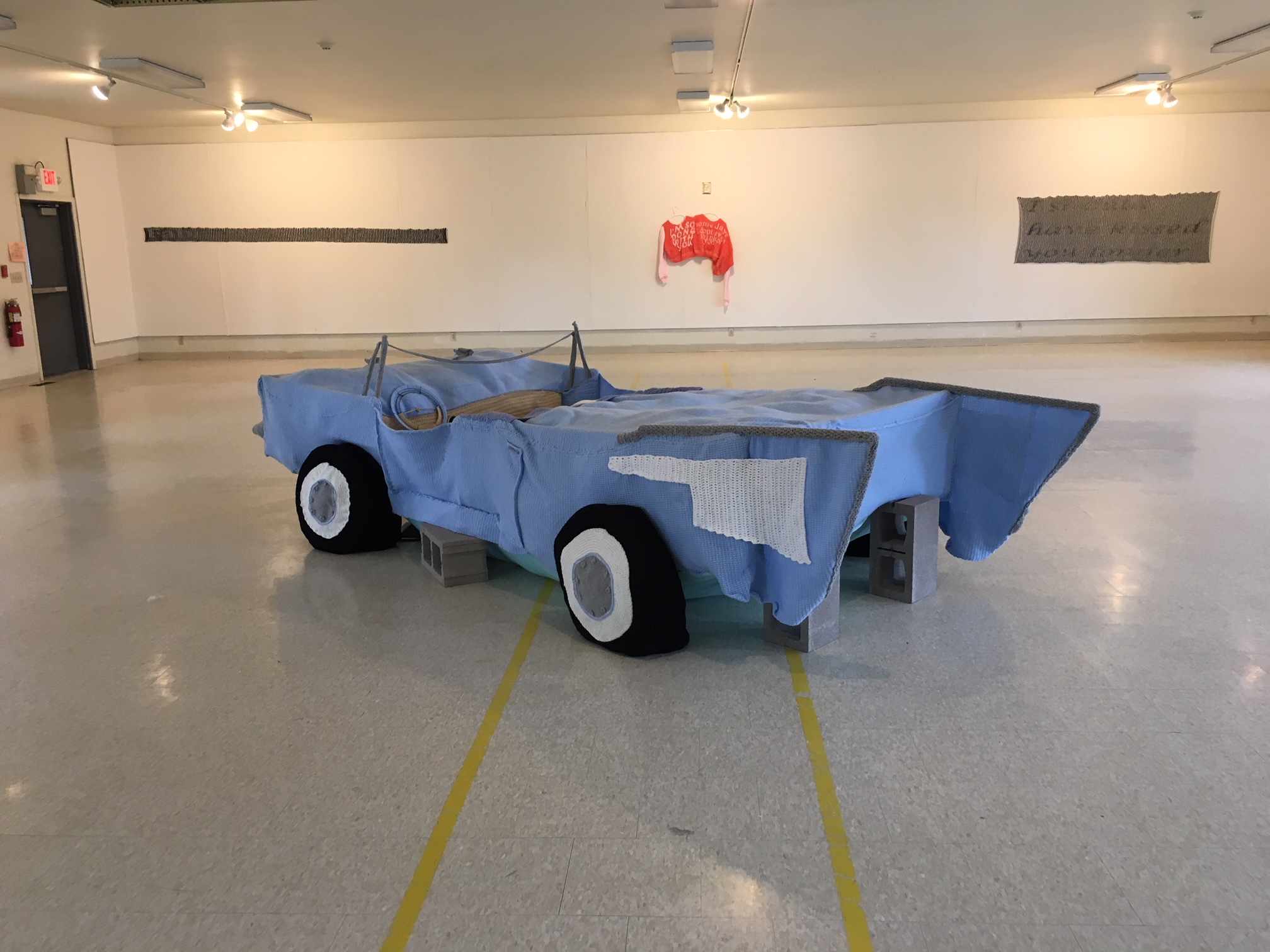 I am the only commercial illusion knitter in the United States at this time, so that’s something that makes me different. I take commission work of imagery and text to create my illusions, but find that text is the most powerful in terms of subject matter. I specialize in material subversion and pushing the material as far as I can. If it can’t be done, I will most likely try it. Most recently, I have constructed a 1957 Chevy Bel-Air entirely out of yarn and stuffing, so don’t try to tell me it can’t be done!