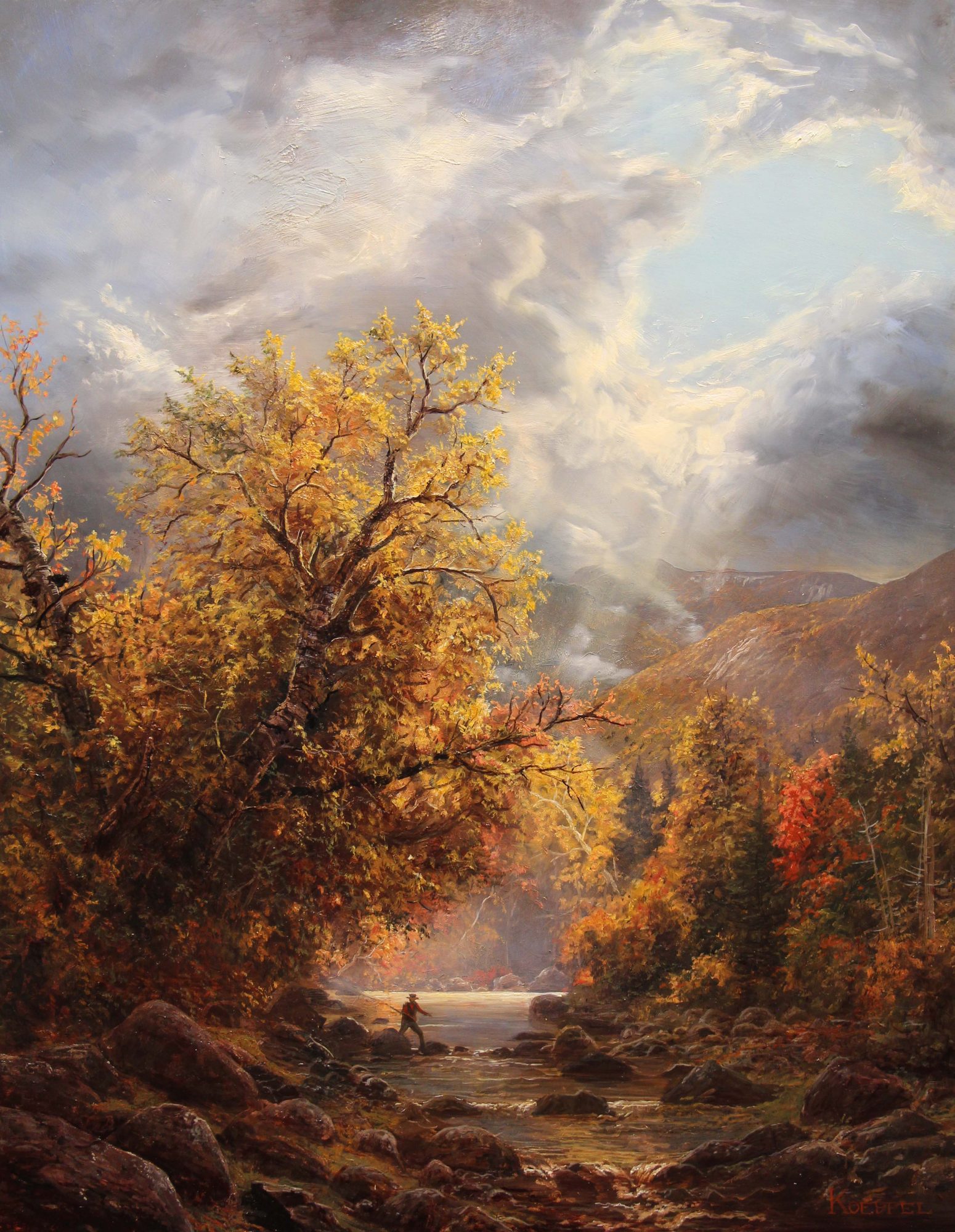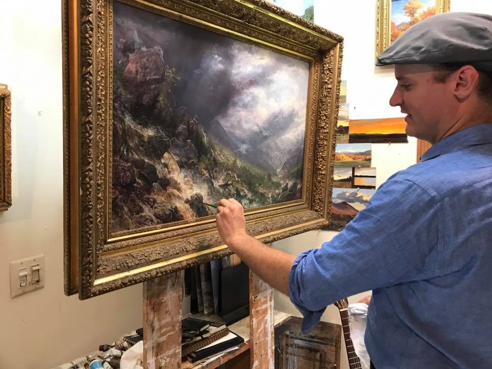Early in my career as a fine artist I was drawn to the American landscape as a subject for my paintings. As I began to draw and paint our beautiful natural landmarks, I became increasingly aware of brilliant 19th century paintings of the same subjects. I was so impressed with the quality of this historical artwork, and spent years trying to understand the methods and philosophy behind them. These discoveries were incorporated into my own working method and mode of depicting nature in a way that reflects out deeper human experience of it. As my work began to be recognized and collected nationally, I was asked to publish a series of instructional DVDs on the Techniques of the Hudson River School Masters (the “Hudson River School” is a broader term for the phase of 19th C. American painting that I’m predominantly interested in.) These popular instructional videos sold widely, and increased awareness of my work amongst my peers, and in academic circles, and I’ve been lecturing and exhibiting broadly across the country, with gallery representatives in Boston, New York City, Chicago, Naples FL, and several places in New Hampshire and Maine. I now keep my studio in Jackson, NH in the White Mountains, and also travel a lot painting wherever I go. I feel blessed with how well my work has been received.