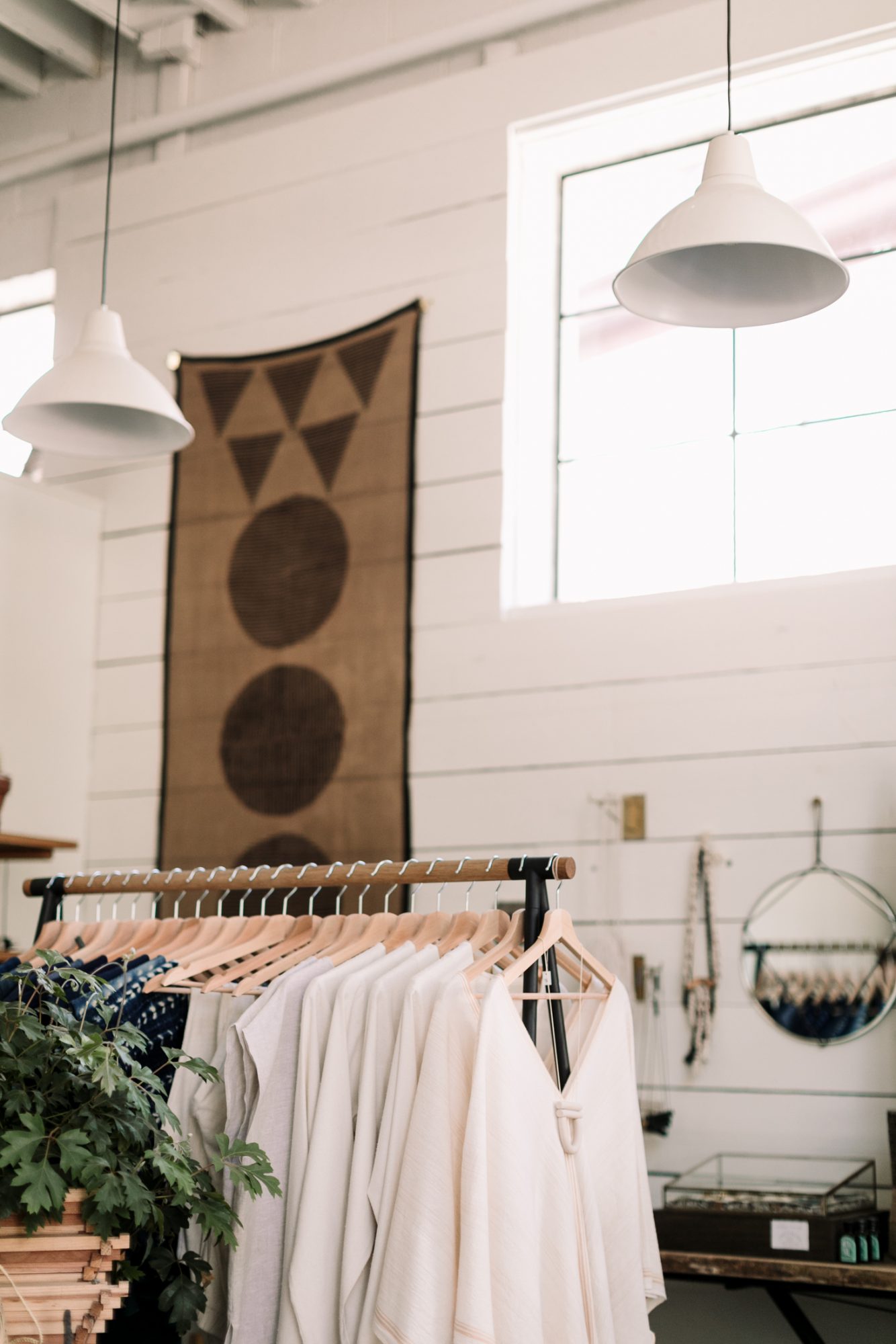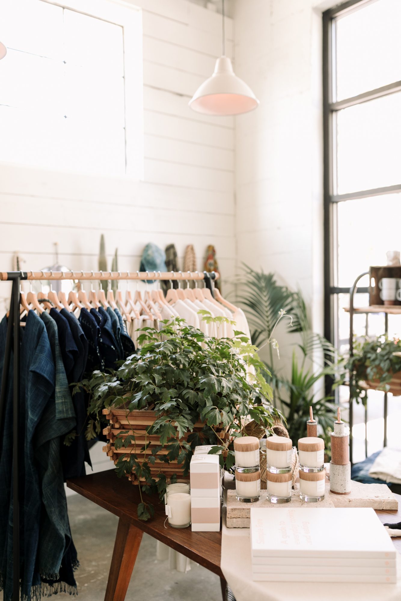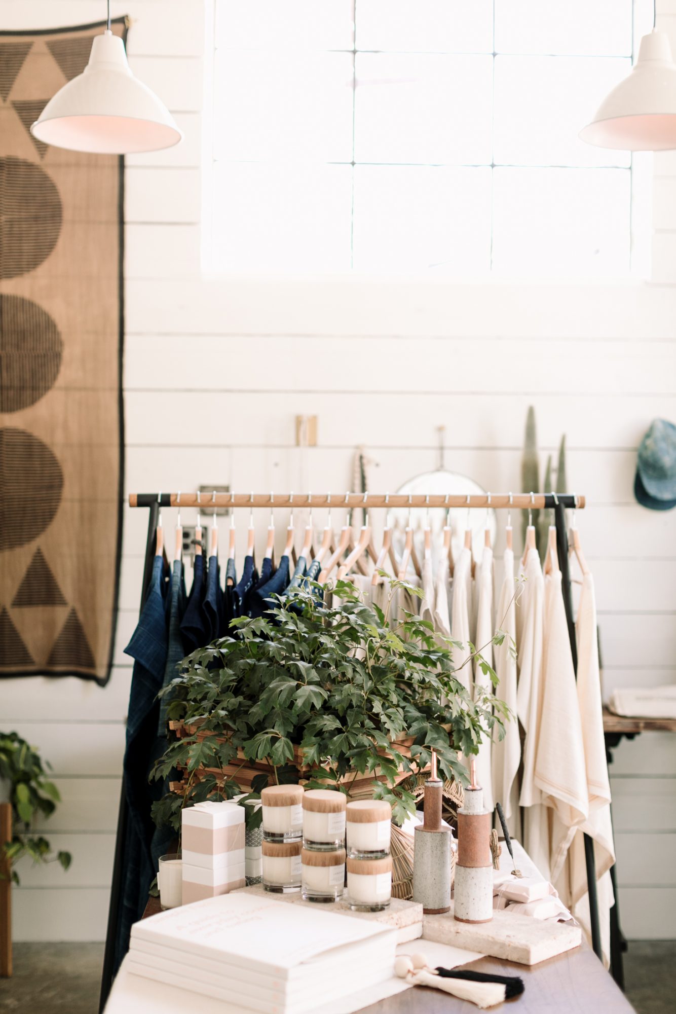 We’re a shop that sells home goods and apparel. Our vibe is East Coast meets West coast– both California and New England. Textures and natural elements inspire us the most so we look to source goods that celebrate them like hand-thrown ceramics, block-printed scarves, earthy candles, letterpress cards, slow fashion garments, etc.