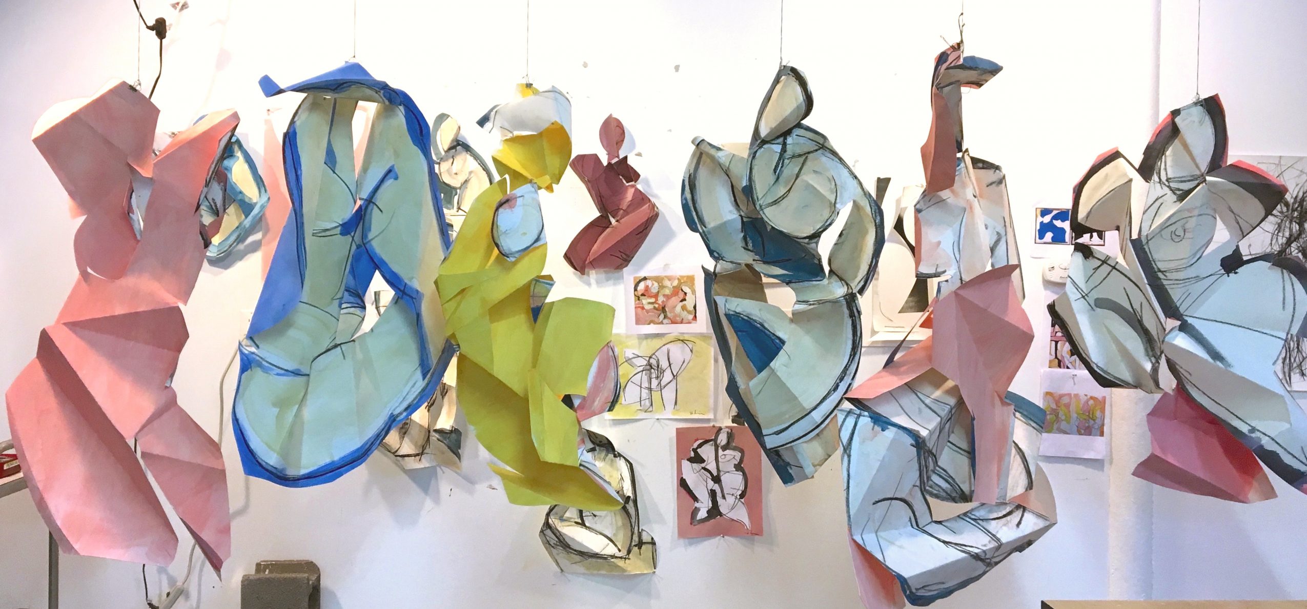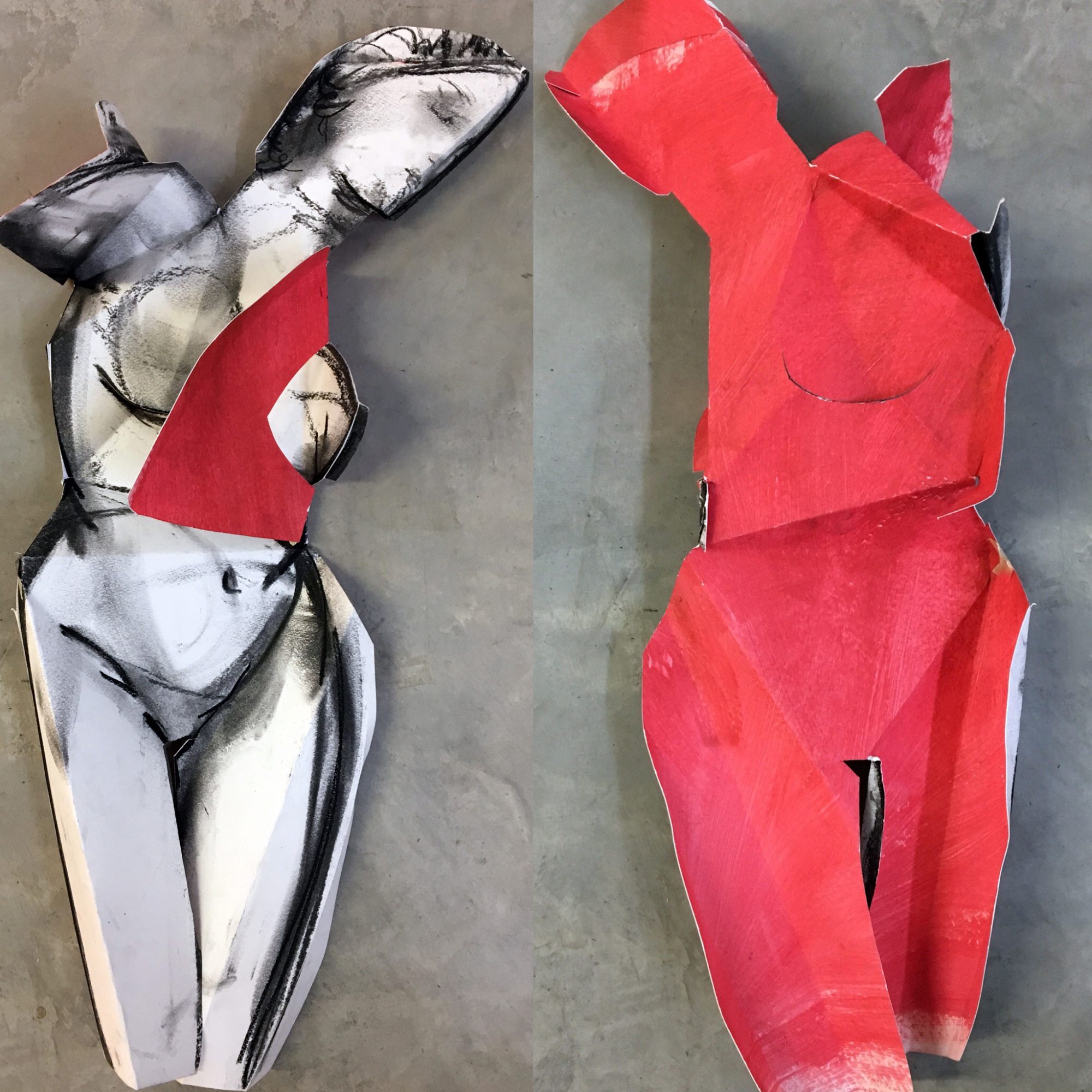 My work explores movement, dance and figurative space. I work on paper, canvas, and clay. My most current body of work Folded Females™ employs expressive line, a deep connection to kinesthetic form and the notion of liminal spaces. The works are made intuitively using paper or metal, folded to create a portrait of the female, portraying both strength and vulnerability in their various forms. I reference Greek and Roman sculpture, exploring questions about accepted ideals of beauty and the process of unfolding and folding of oneself in response to each moment of the human, lived experience. I am excited to see where this new body of work takes me.