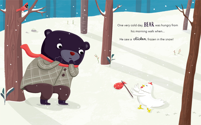I’m an illustrator specializing in the children’s publishing industry. My work spans from children’s book, toys, giftware, tableware, apps, and much more. All for the young (and the young at heart.) I’m also the author of Bear and Chicken- a picture book recently published by Running Press Kids. I’m known as Chicken Girl online- because I love chickens! I enjoy telling stories, humor, color and patterns- this work sets me apart in the ability to cross over many industries.