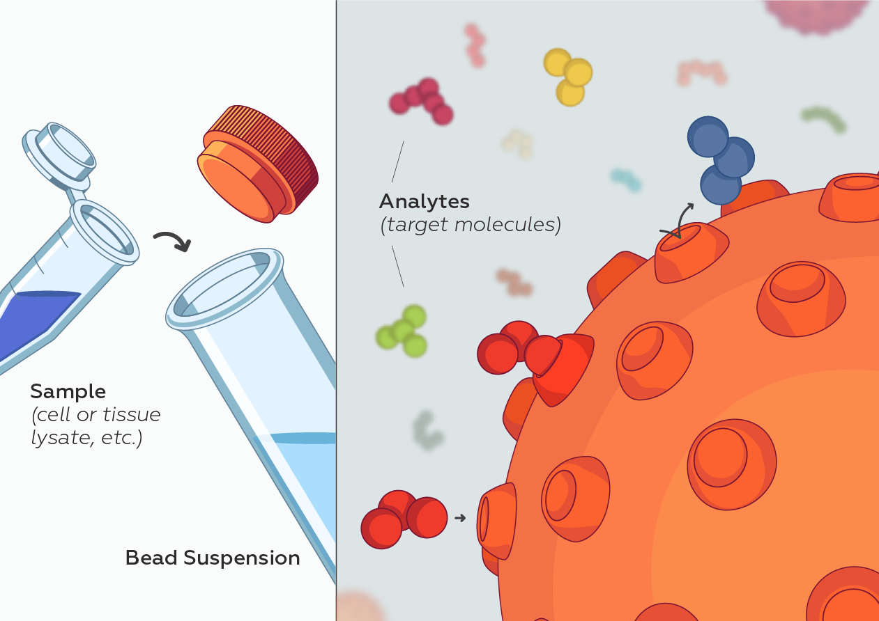 BAMS combines two common technologies: mass spectrometry and immunoassays. Mass spectrometry is currently a low throughput method because it requires extensive upfront sample fractionation by liquid chromatography (LC-MS). Immunoassays such as ELISA and antibody microarrays are low multiplex and are unable to measure hundreds of proteins. BAMS innovatively couples bead-based immunoassays with mass spectrometry to achieve both high multiplex (hundreds of proteins per assay) and high throughput (thousands of assays per day) capability. The BAMS assay platform is an easy-to-use method to perform in-depth proteomic profiling for Life Science research and development.