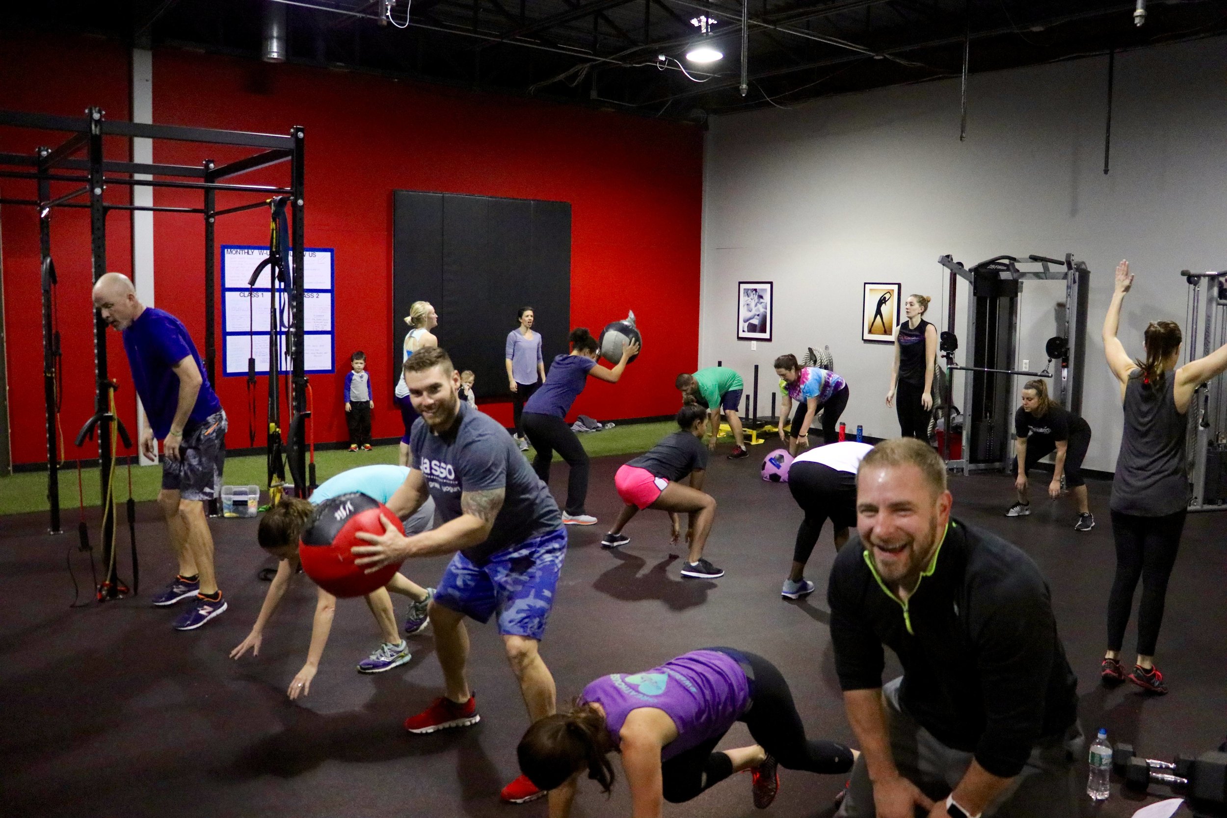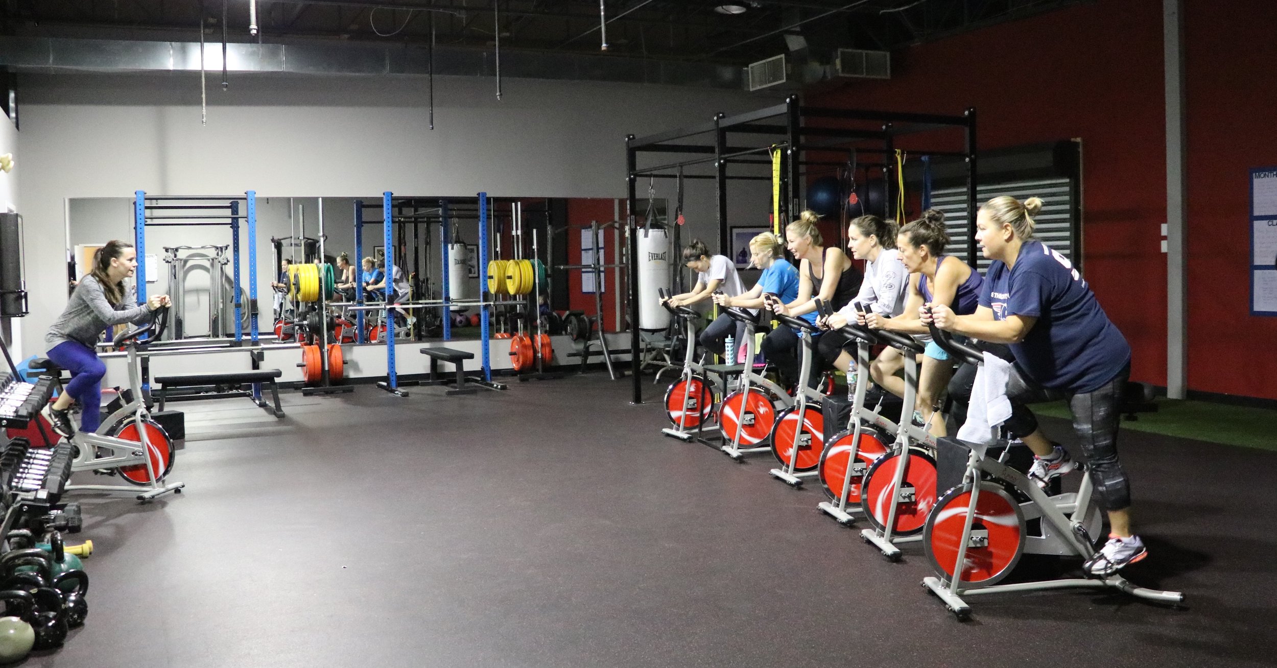 Our classes include strength and conditioning, spin, and kickboxing. Even though everyone in a class does the same workout we are always watching for quality movement and good form.
