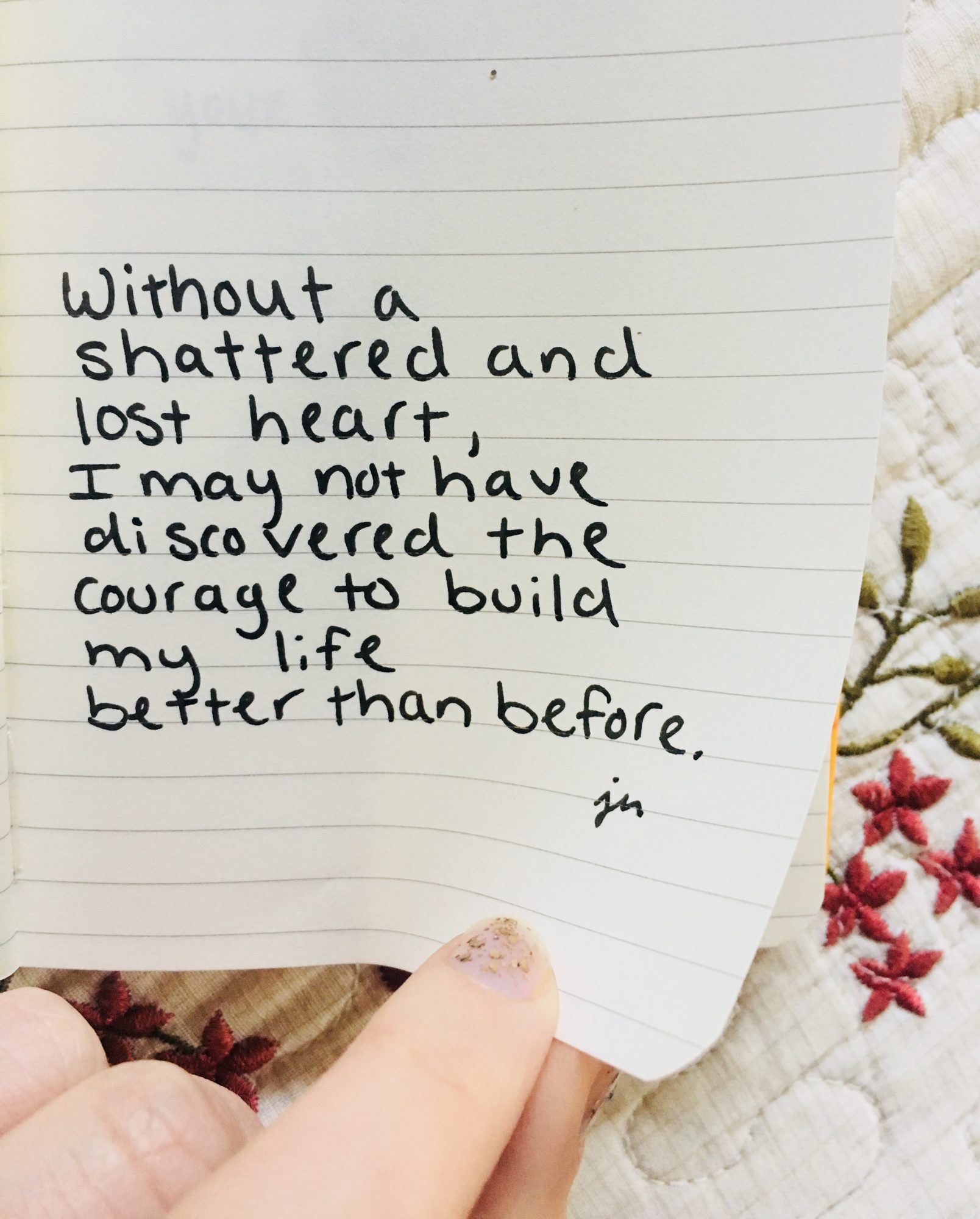 I forced myself to practice the courage to put my thoughts out there for the world to read, especially my poetry. That poem I had published in college was the first time I ever let anyone read my poetry. It’s funny now how much I love sharing. It’s fun when fear turns into love.