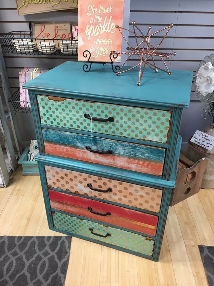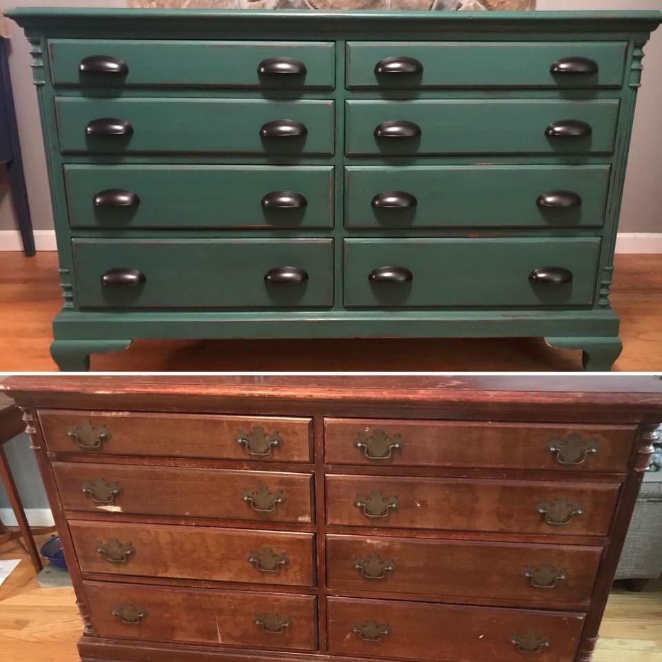I grew up in a small town in Southern NH. I Studied visual/fashion Merchandising at Lasell College in Newton, MA. From there, I took a job at Filene’s Department store doing all of the visual displays and mannequins. I took a little time off to have a family, I have a wonderful husband and two great children. During my time as a stay at home Mom, I took up a hobby in painting furniture. I love taking old pieces and giving them a new life.