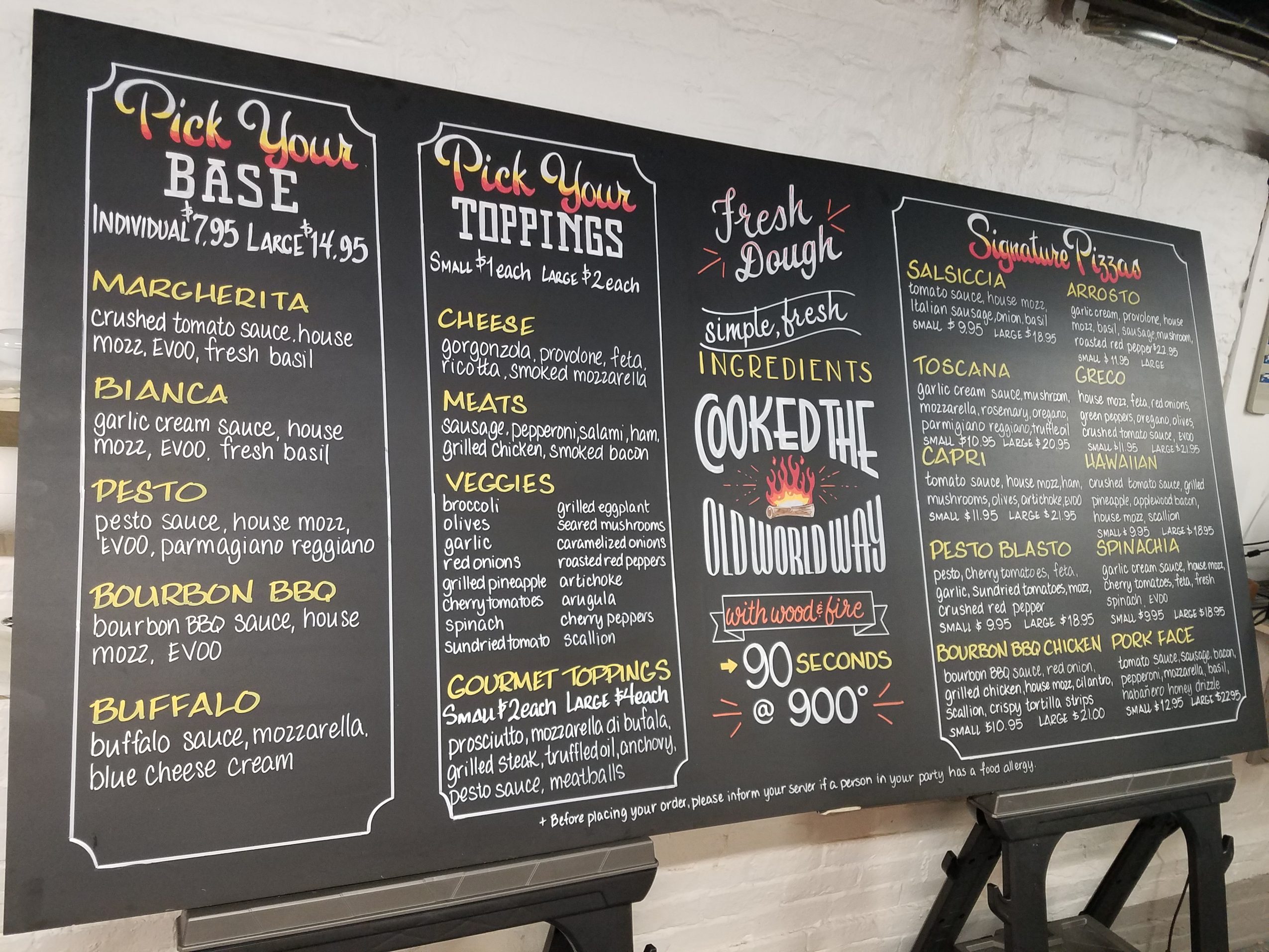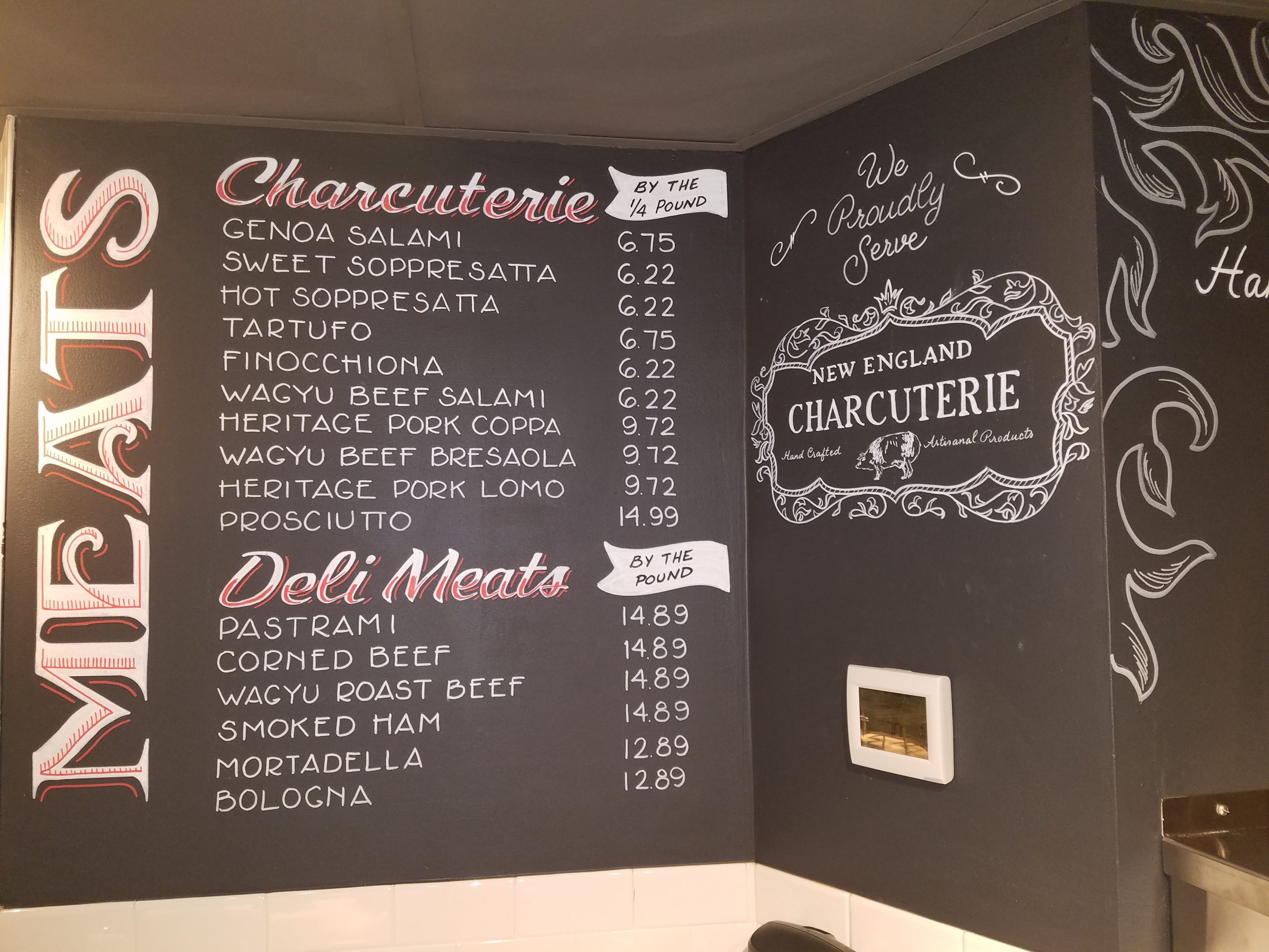 When my son was small, I taught myself calligraphy and started a small business addressing wedding envelopes from home. This opened my eyes to the world of typography and fell in love. After a few years divorced, and now needed to pay the bills- got a waitressing job and stayed in the industry for 20 years. Chalkboards became popular and I would be the one to write specials and such. The last server job I had was at a restaurant called Sam’s on Boston waterfront. They had floor to ceiling chalk walls as you walked in with chalk for guests to use. I would write our Cheese Specials and Oysters and started really getting into fonts and designing these to be especially attractive. I started studying fonts and letters. Paying attention to advertisements. The thing I love about typography, packaging, design, chalkboards etc. is the power of the font. It can express an era of time. Virtually every decade has a look in typeface. Vintage, modern, art deco etc. It can convey a subconscious feeling. All this and current research has a direct effect on my how I approach each and every job now. At one point the owner suggested I do some chalk art for when we had private events. I would show up early, make a Welcome wall or the clients’ logo or whatever they wanted, make a few bucks, stay and serve the party. This was super exciting making a little extra cash drawing letters for the events. One day in my off time, I was drawing something and the GM and chef from another restaurant walked in and thought I was a “chalk artist”. Didn’t even know there was such a thing, but they wanted me to make some signs at their place. ChalkBOS was born. I made some business cards, word caught on and I started taking jobs on my off day from serving. The restaurant closed and I was laid off, but now able to take on every chalk job that came my way. Eventually enough so that I didn’t have to look for another waitress job.