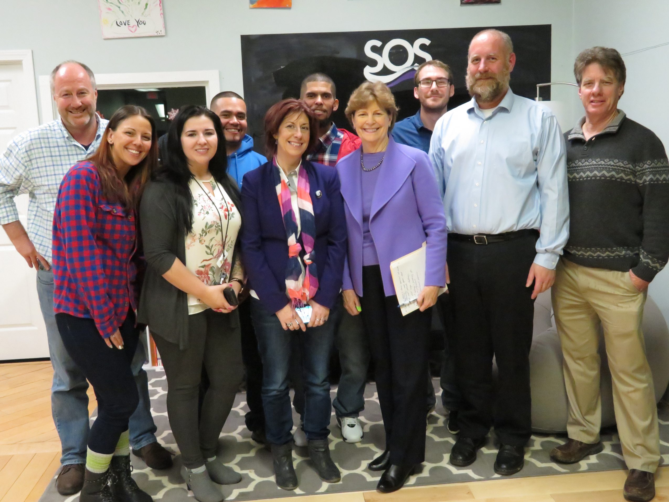 In May of 2017 SOS in Dover was open and a grand opening was attended by over 150 attendees including U.S. Senator Maggie Hassan. During the summer of 2017, Goodwin Community Health again recognized the demand and engagement that SOS was getting with our programs and services and the value of our services. Goodwin agreed to fund two additional part-time positions to help provide offsite coaching services within the health center as well as provide us additional capacity at the recovery centers.