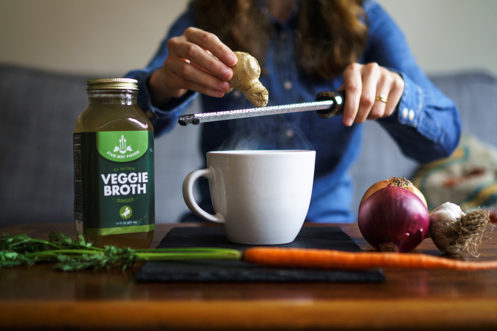 There are always challenges with growing a small business from scratch. One struggle along the way was going from farmers markets to retail stores. Between packaging, merchandising and getting onto store shelves, the whole thing is a long process. As a refrigerated item, gaining shelf space is competitive. Luckily, with Five Way Foods, once stores carry our broths, customers follow and buy.